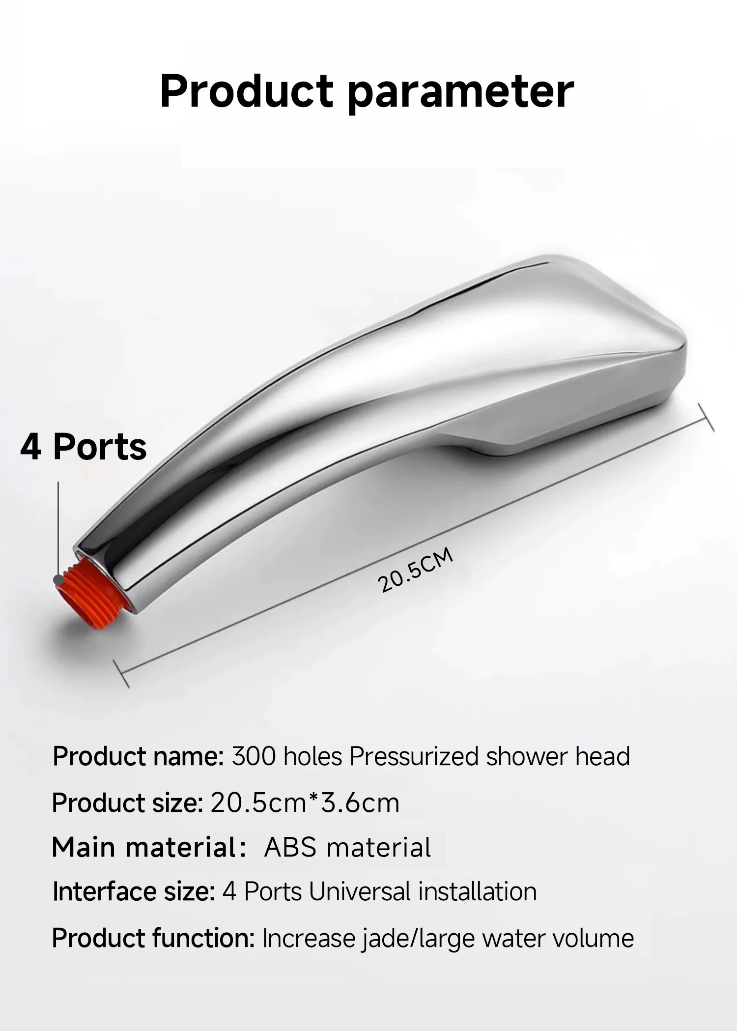 Soffione doccia quadrato a 300 fori Soffione doccia pressurizzato a risparmio idrico Soffione doccia ad alta pressione in ABS cromato Accessori per il bagno