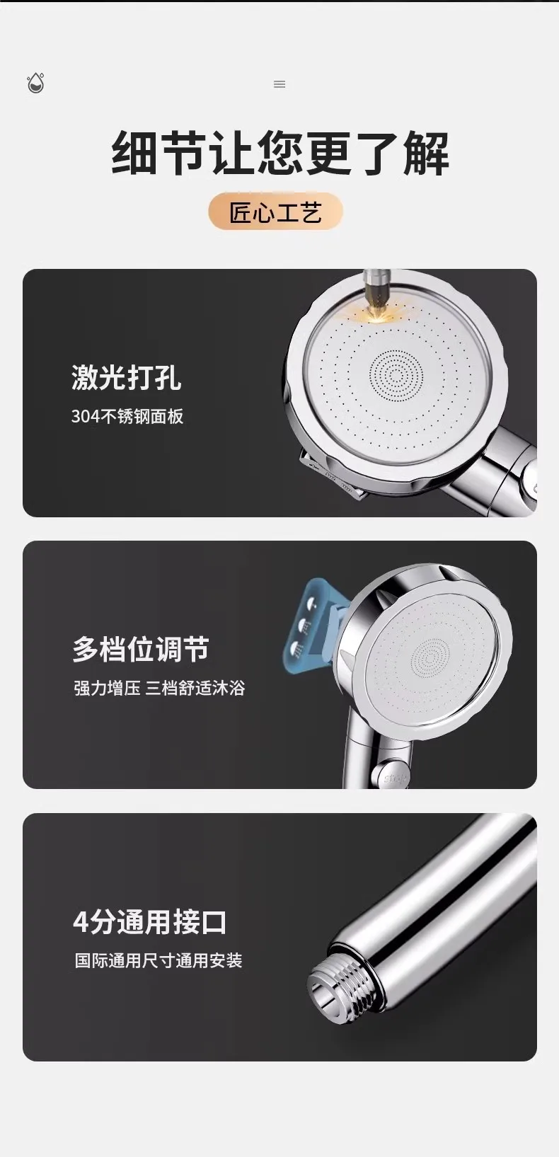 3 modes shower head