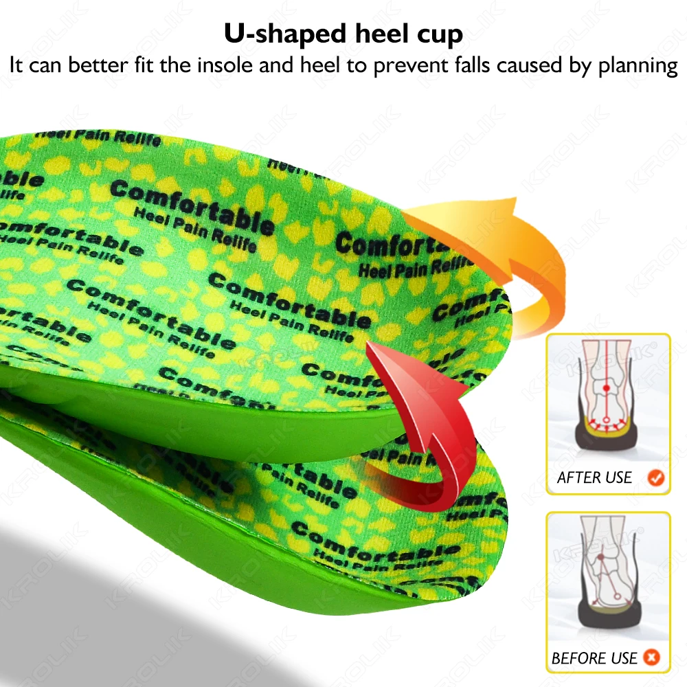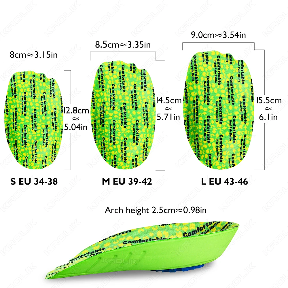 Supporto ergonomico: Progettato secondo i contorni naturali del piede, queste solette forniscono un’eccellente supporto per l’arco plantare, aiutano a migliorare l’ascensore e allevia il disagio associato alla fascite plantare e ai piedi piatti.