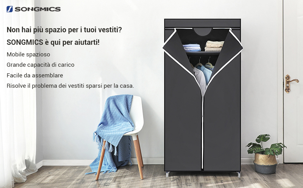 AIUTO: se ti manica un guardaroba salvaspazio ma spazioso, questo arriva appena in tempo. Finalmenta puoi mettere ordine in vestiti, scarpe e giocattoli senza occupazione troppo spazio