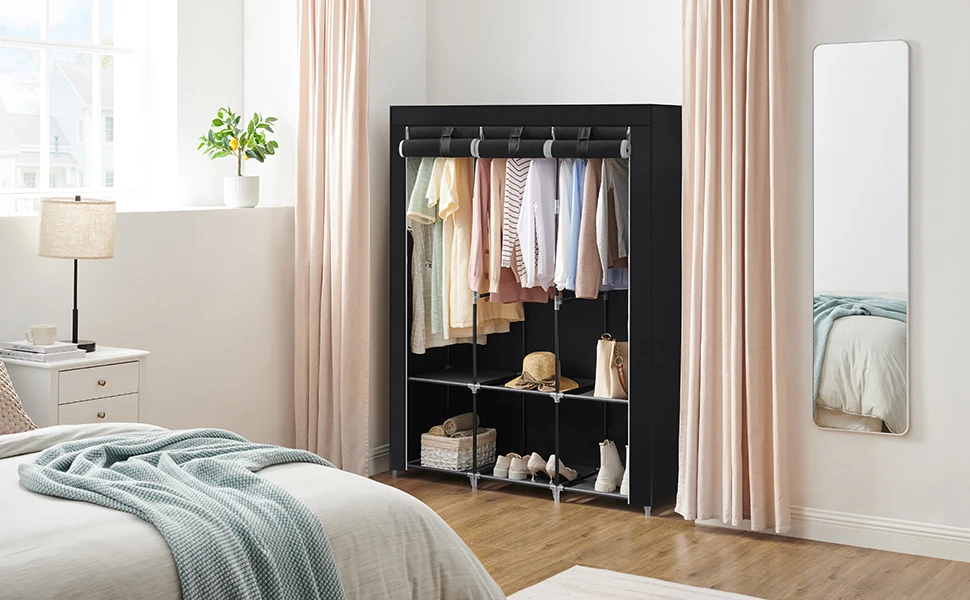 [Facile da montare] Non è necessario preparare alcuno strumento di assemblaggio.Tutto quello che devi fare è unire i tubi metallici con connettori in plastica e applicare la copertura in tessuto, potrai assemblare questo armadio in breve tempo