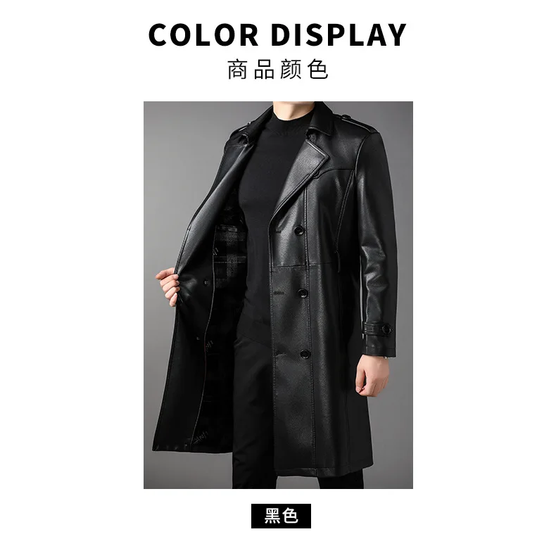 Soprabito in pelle da uomo al ginocchio di alta qualità per l’autunno e l’inverno giacca a vento da lavoro doppiopetto cappotti in pelle PU-026