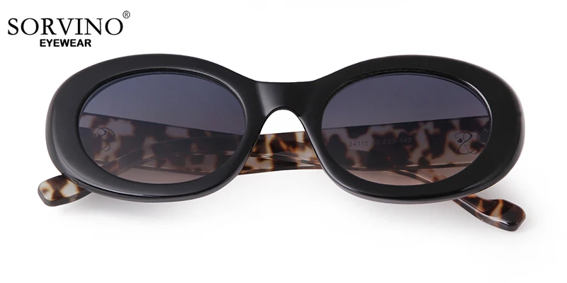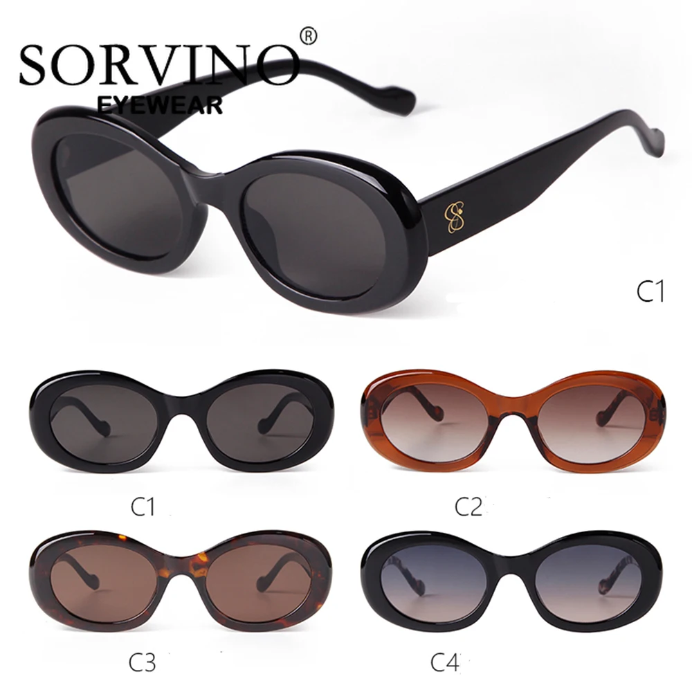 SORVINO Trendy Conchiglia di tartaruga Occhiali da sole ovali neri Lenti marroni sfumate Rotonde Donna Uomo Occhiali da sole Donna UV400