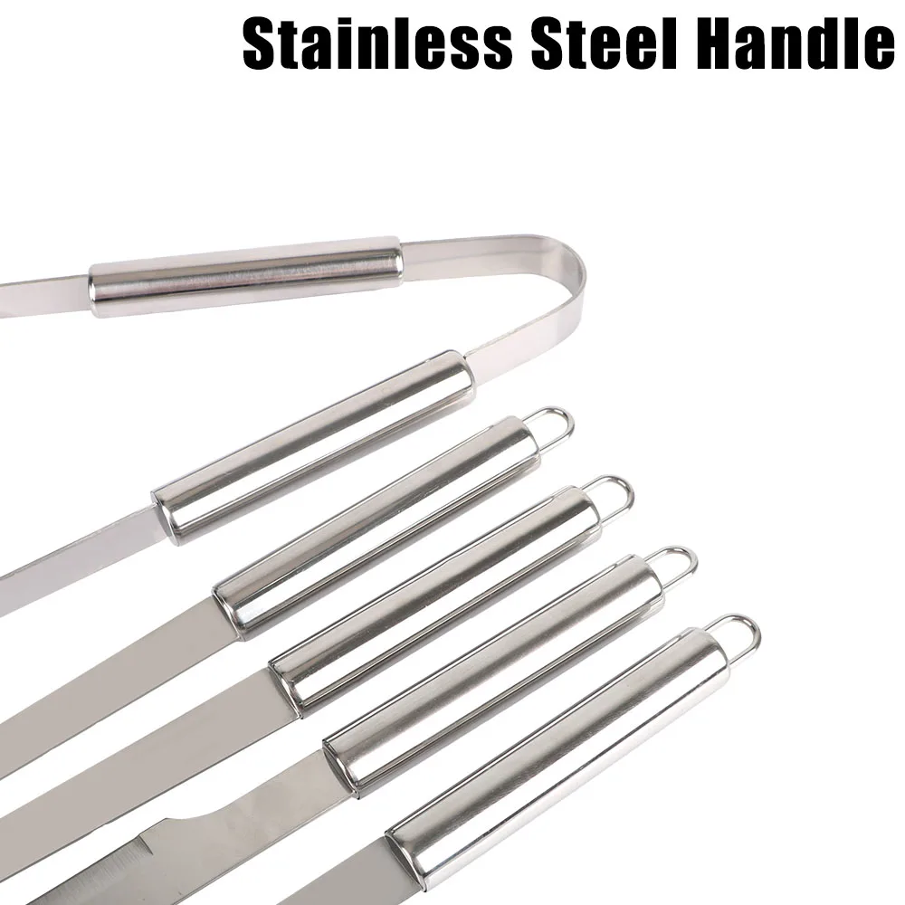 Materiale di alta qualità: realizzato in acciaio inossidabile resistente, il Set di utensili per barbecue è resistente, antiruggine, E di lunga durata con manici antiscivolo in acciaio inossidabile per fornire l’esperienza di cottura più confortevole.