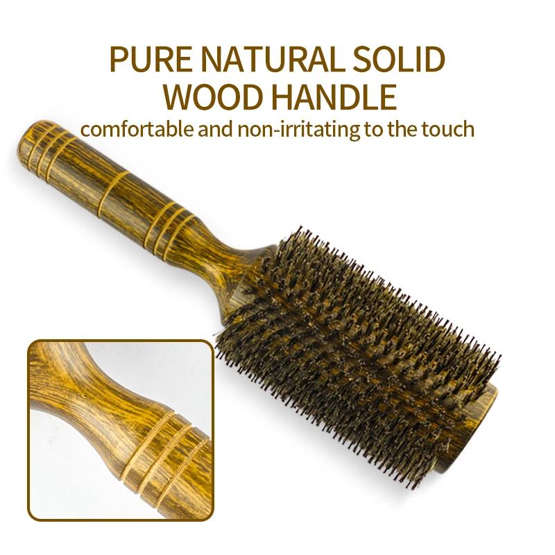 Spazzola per capelli rotonda professionale con setole di cinghiale per donne e uomini pettine per lo Styling dei capelli parrucchiere parrucchiere spazzola rotonda in legno