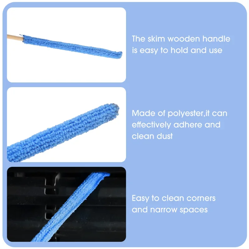 Comodo manico lungo, può aiutare a raggiungere gli spazi stretti e difficili, afferrare la polvere negli angoli: puoi pulire spazi stretti, ai posti che non possono raggiungere, ideali per tende, auto, soffitti, prese d’aria, ecc.