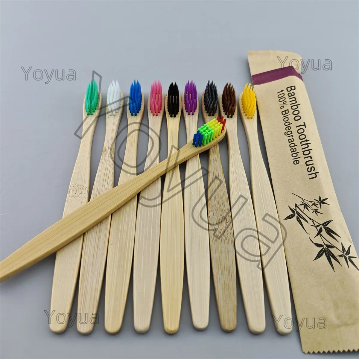 Spazzolini da denti in bambù da 100 pezzi Spazzolino da denti in legno ecologico portatile per adulti Spazzolini da denti morbidi per l’igiene orale dentale