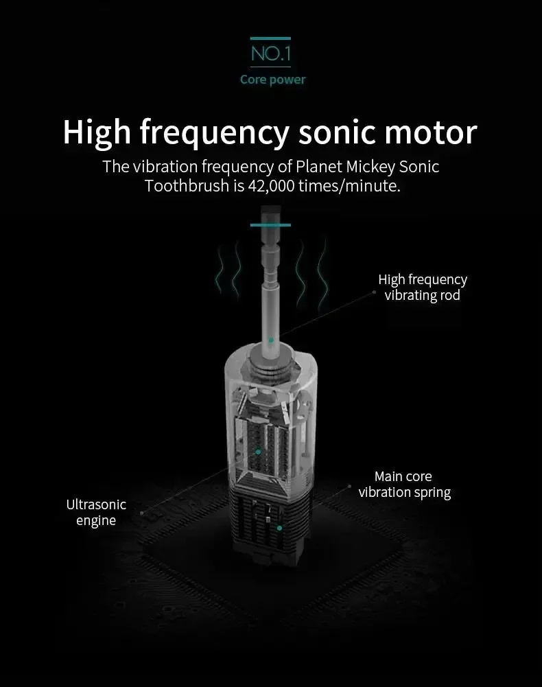 Tecnologia ad ultrasuoni: lo spazzolino utilizza la tecnologia ad ultrasuoni per pulire accuratamente i denti, rimuovere la placca e promuovere denti e gengive sani.