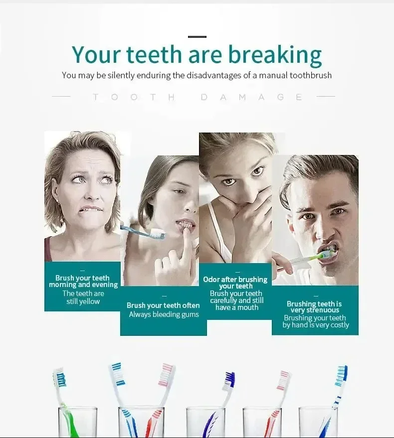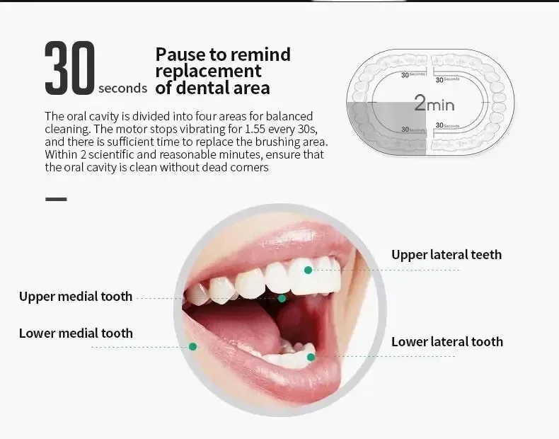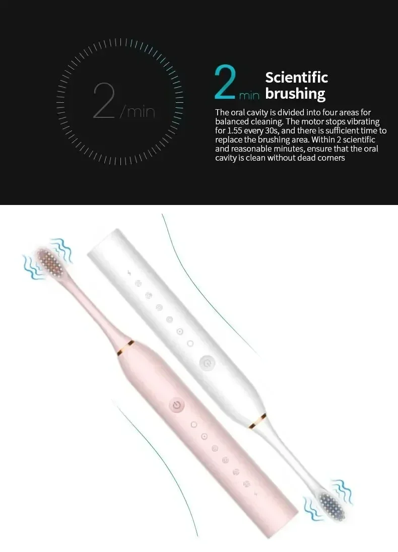 -Pulizia ad ultrasuoni: esperienza nell’igiene orale superiore con lo spazzolino elettrico ad ultrasuoni. Le sue vibrazioni ad alta frequenza rimuovono efficacemente placca e batteri, lasciano la bocca fresca e pulita.