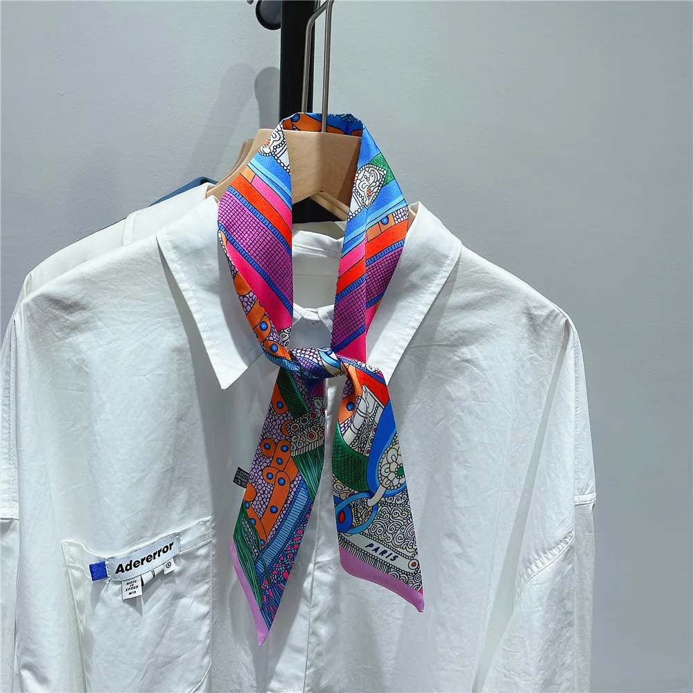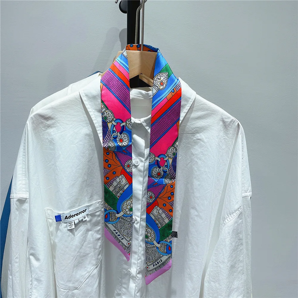 Splendida sella stampa sciarpa estiva 2023 marca design donna borsa magra sciarpe fascia per capelli collo sciarpa di seta signore Foulard fascia