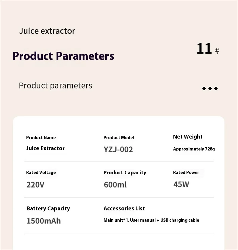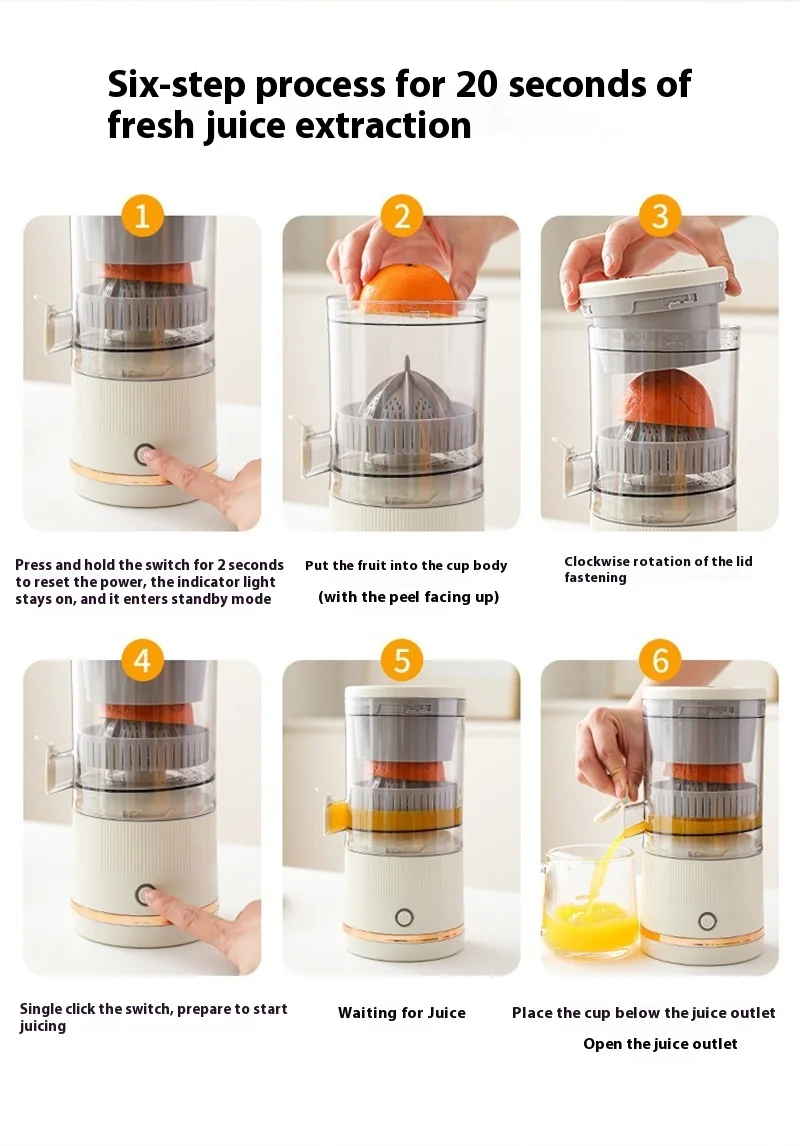 Dì addio alla tradizionale pressatura manuale; tenere premuto il pulsante di accensione per 1 secondo per ripristinare, quindi premere nuovamente brevemente per iniziare a spremere, risparmiando tempo e fatica.