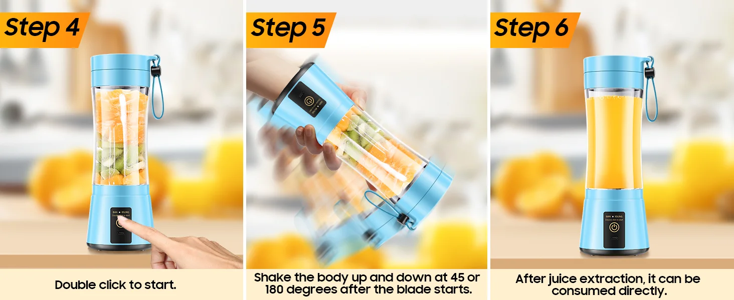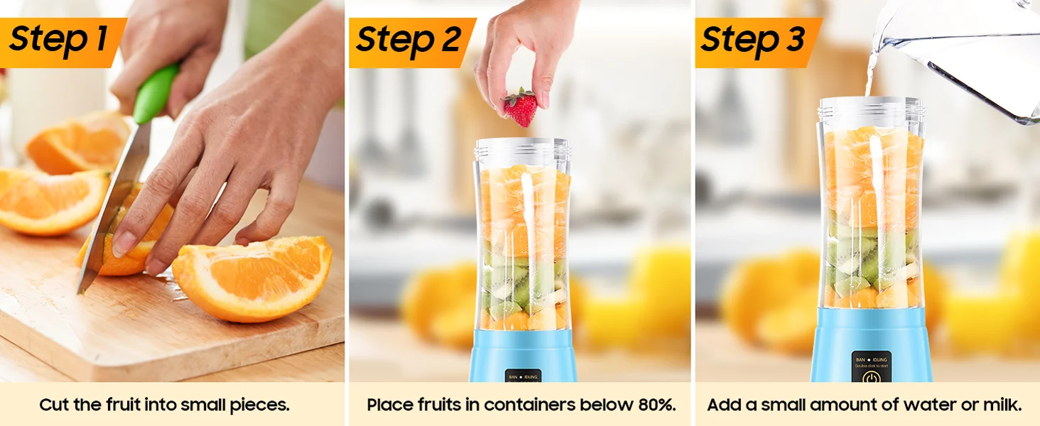 1.Si tratta di un mini spremiagrumi portatile, quindi la sua velocità e dimensioni sono più piccole degli spremiagrumi domestici di grandi dimensioni (questo è inevitabile).Per prestazioni ottimali: tagliare la frutta in piccoli pezzi, aggiungere una piccola quantità di liquido (ad esempio acqua o latte) prima di accendere il dispositivo.In caso contrario, potrebbe non funzionare.