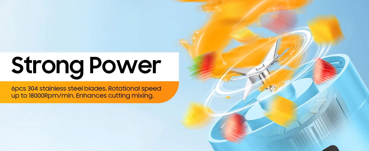 2.Lame ad alta velocità e controllo a 3 velocità:Dotato di 6/12 lame affilate in acciaio inossidabile 304 e un potente motore in rame (fino a 12.000 giri/min), questo mini frullatore portatile è la scelta compatta definitiva per i frullati.Con 3 velocità regolabili, raggiunge una consistenza perfetta per le tue creazioni, succhi o alimenti per bambini.