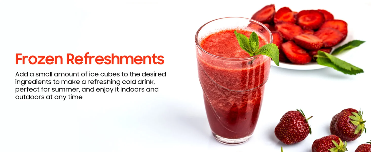 1.Vera libertà wireless e prestazioni potenti:Sperimenta una portabilità senza precedenti con il nostro frullatore cordless.Alimentato da doppie batterie da 1500 mAh ad alte prestazioni, offre una forte capacità di miscelazione per tritare ghiaccio, frutta surgelata, noci e verdure in bevande lisce.