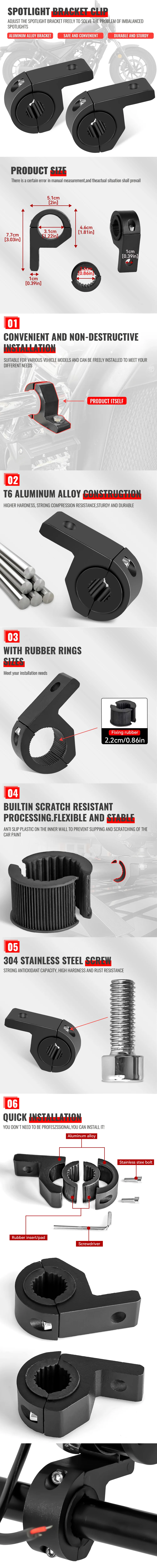 Staffa di montaggio per barra Bull caldo Faretto per luce di guida per nebbia Staffa di serraggio universale 19-26 mm per supporto per fendinebbia per moto per autoDescrizione:staffa faretto motoApplicazione del prodotto:25-32 mmAlluminio T6063, tutta la lega di alluminio, alta precisione e resistenza all’usuraAmbito di installazione:19-26MMper l’installazione sul manubrio.in altri luoghi, fare riferimento alla situazione reale.utilizzato per luci per moto, supporto per telefono o GPS ecc.universale per la maggior parte dei modelli di moto.Campo di utilizzo:Può essere installato su motociclette, veicoli elettrici, ATV, biciclette, luci per tricicli, veicoli pacchetto: staffa 1/2/4 pezzi (conferma prima dell’acquisto!! !