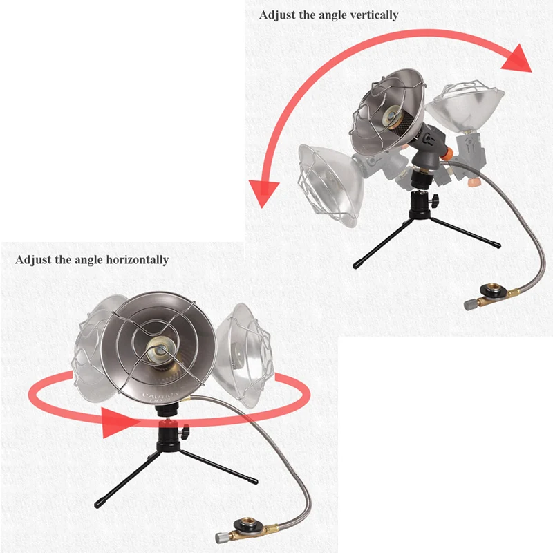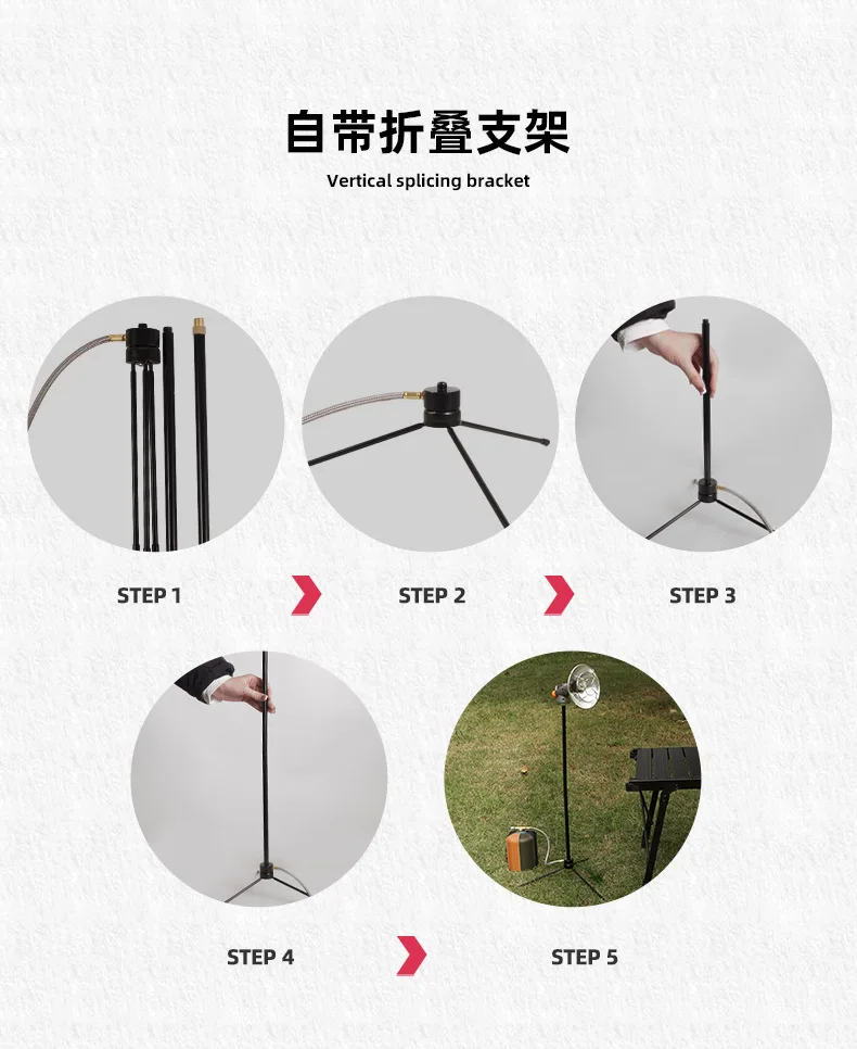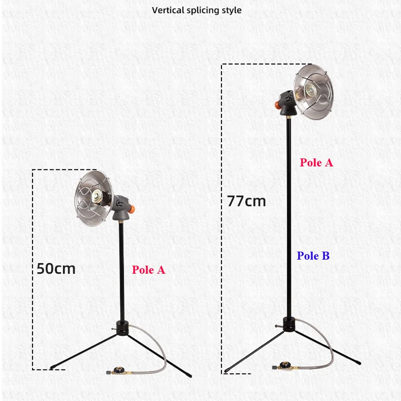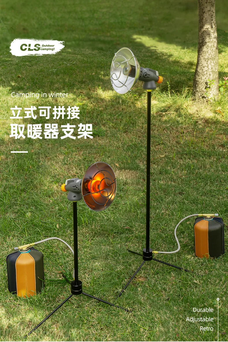 Il comodo treppiede può cambiare l’altezza e la direzione del riscaldatore a gas.Può essere piegato e staccato per un facile trasporto.Fornire la stabilità su varie terraine.