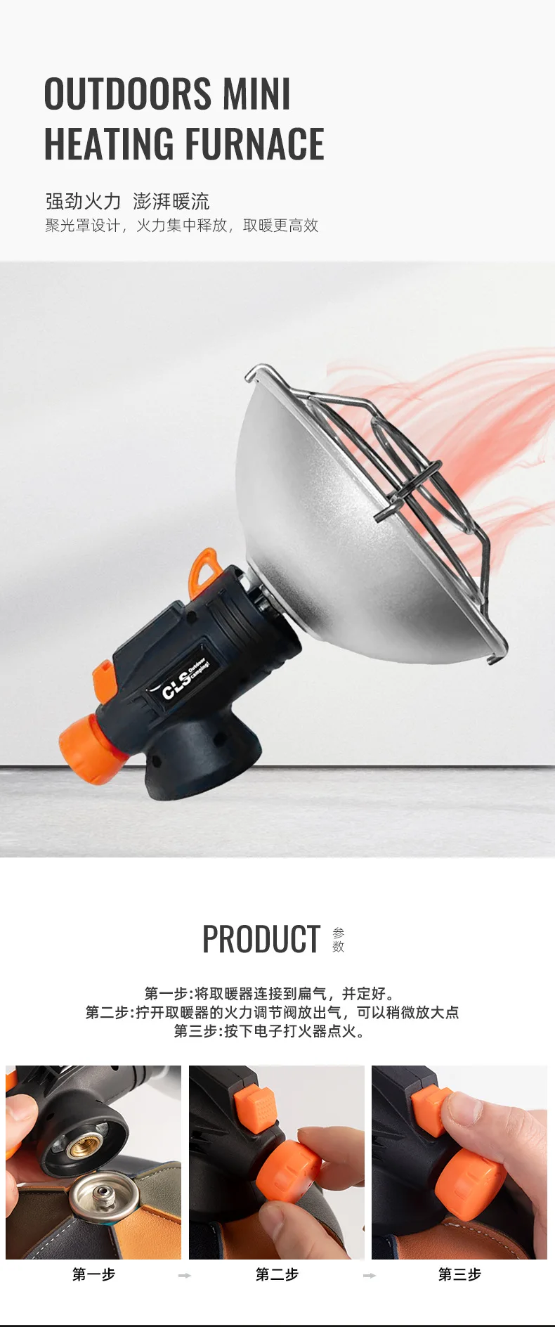 3.Se scegliere il riscaldatore a gas, il treppiede del riscaldatore non è incluso.