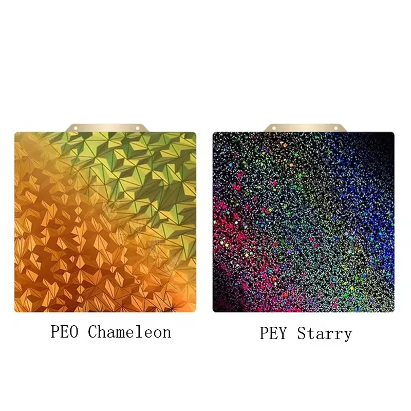 Caratteristiche del prodotto: piastra di costruzione PEY+ PEO Chameleon Design, un lato liscio PEY mostra un array di colori vivaci e simili all’arcobaleno, lungo con un modello stellato celeste, un altro lato
