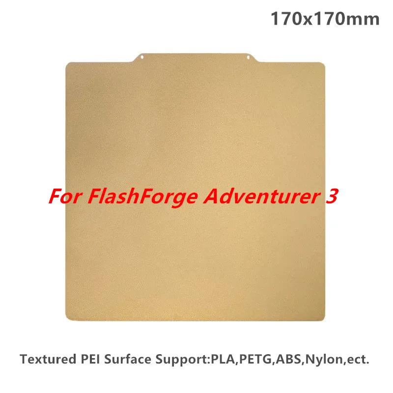 Stampante 3D PEI Build Plate 170x170mm Lamiera di acciaio per molle Letto con stampa magnetica PEI strutturata su due lati per FlashForge Adventurer 3