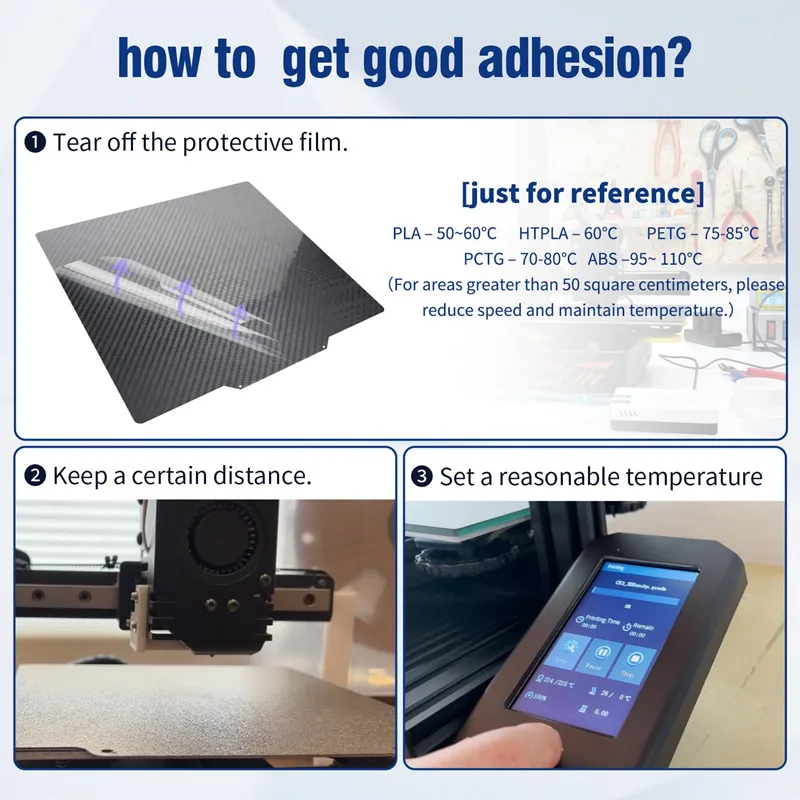 5.La superficie del rivestimento PEI strutturata è fino a 300℃.stampa PLA/PLA+/PETG/ABS/TPU