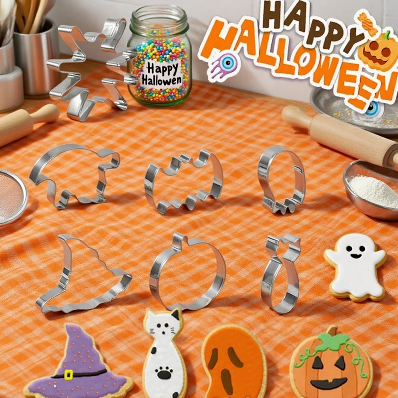 Stampo in silicone per Halloween Pipistrello Zucca Fantasma Teschio Stampo per biscotti Strumento di cottura Strumento per decorare torte con goffratura per biscotti