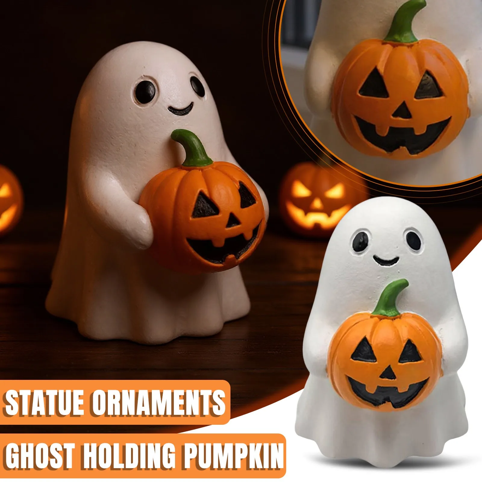 Statua di fantasma di Halloween con ornamento di zucca Decorazione creativa per il desktop della casa Decorazione per l’atmosfera della festa Regalo di festa