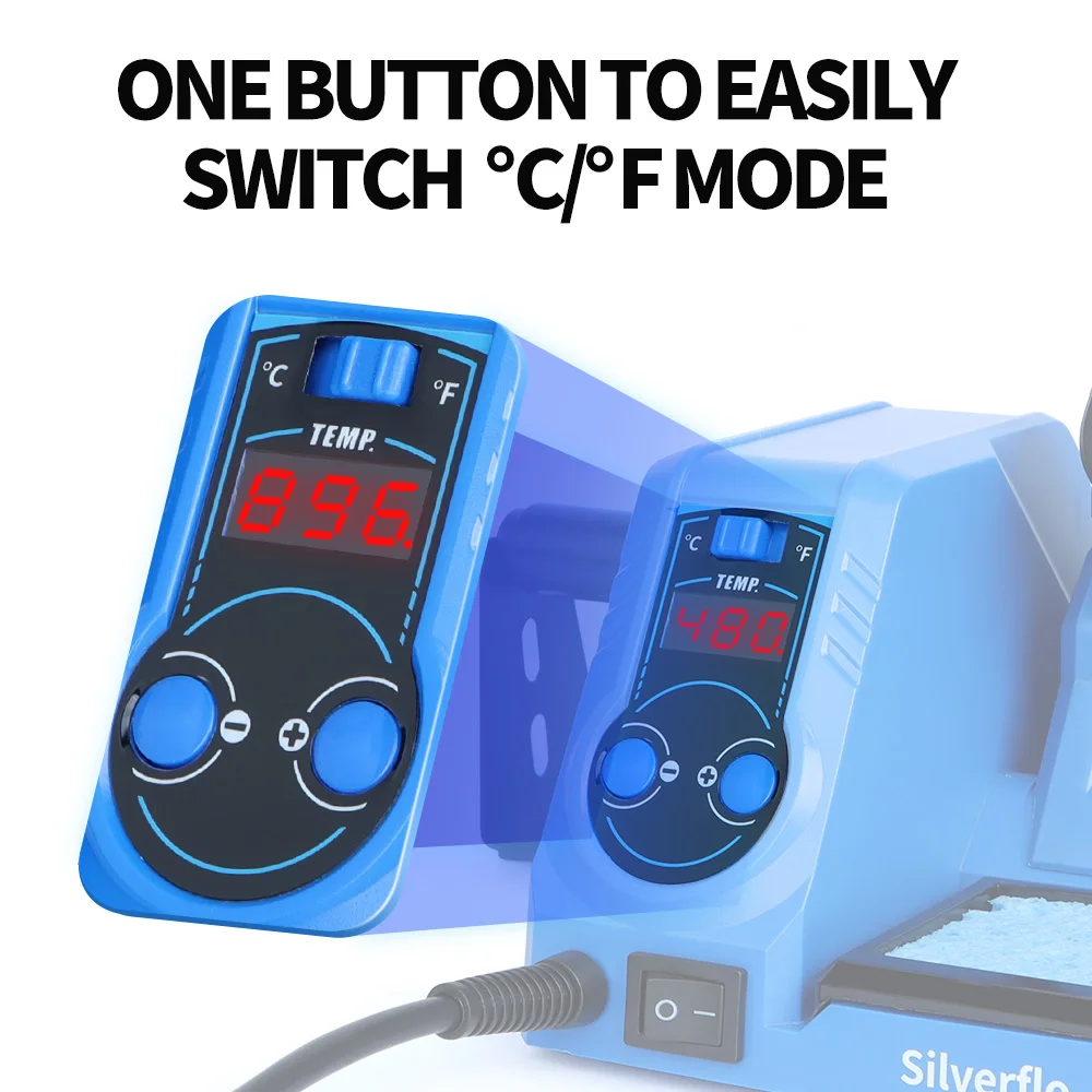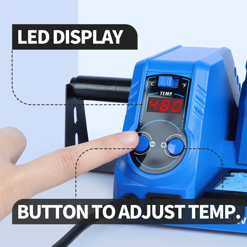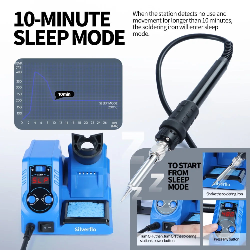 1. Modalità di sospensione, non utilizzata per lungo tempo riduce automaticamente la temperatura alla temperatura predefinita, riducendo l’usura e aumentando la durata del saldatore e dell’elemento riscaldante.
