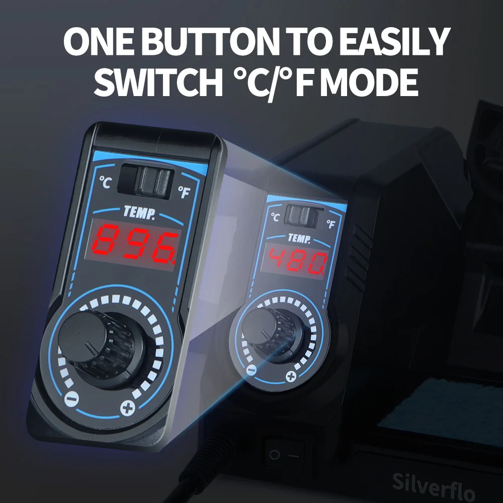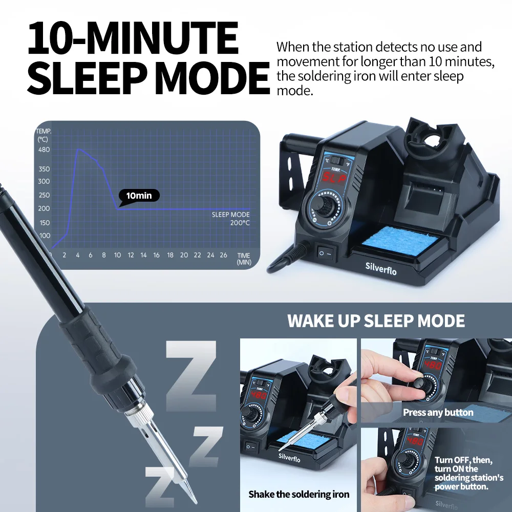 1. Modalità di sospensione, non utilizzata per lungo tempo riduce automaticamente la temperatura alla temperatura predefinita, riducendo l’usura e aumentando la durata del saldatore e dell’elemento riscaldante.