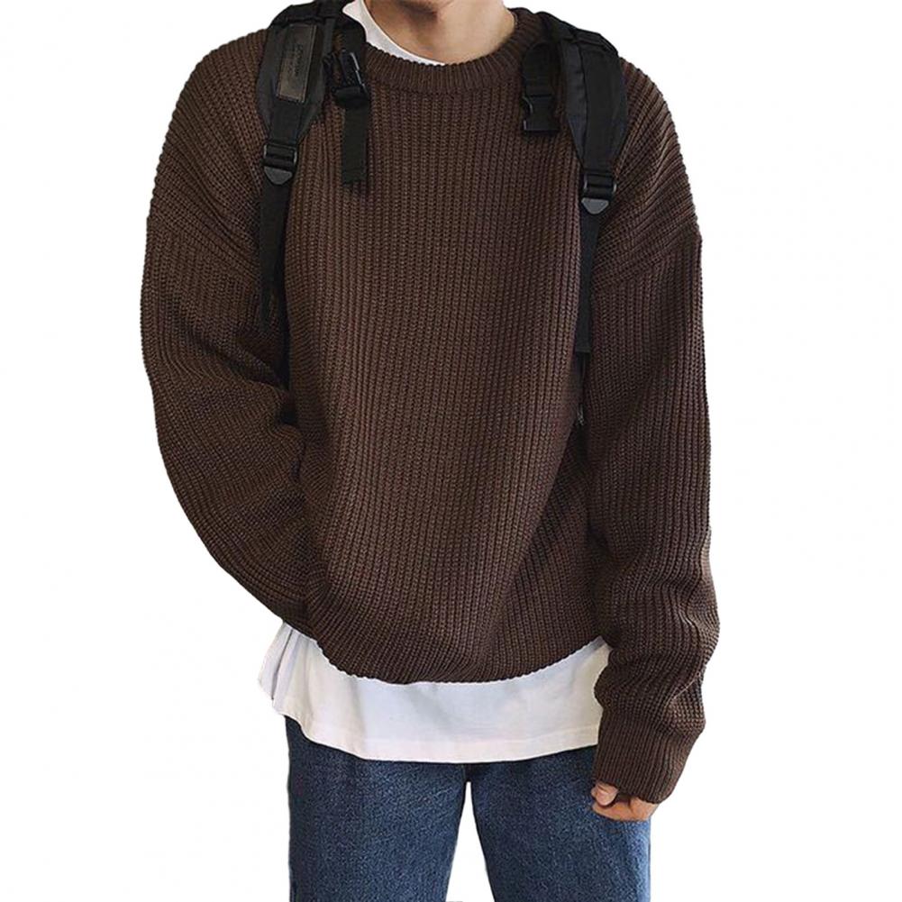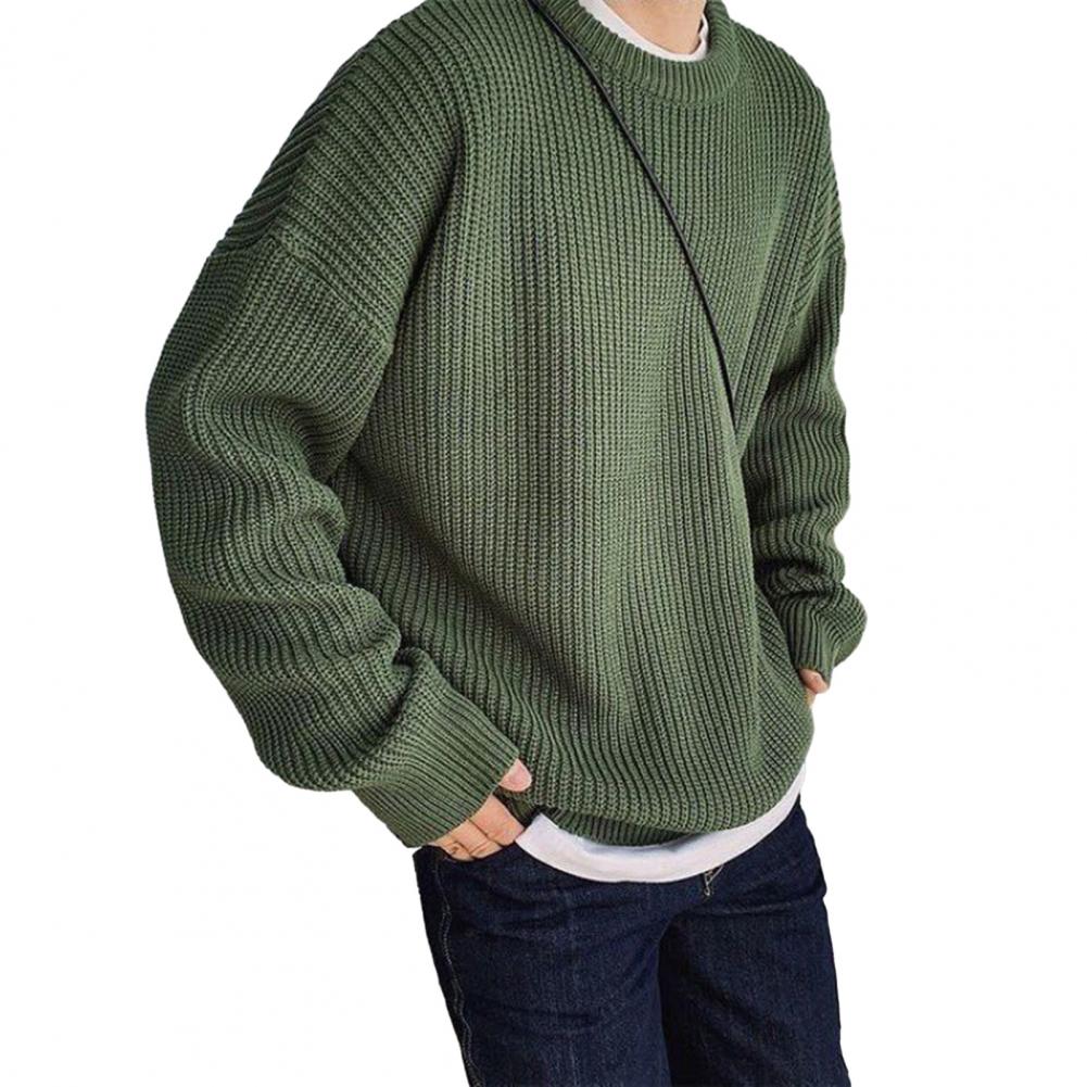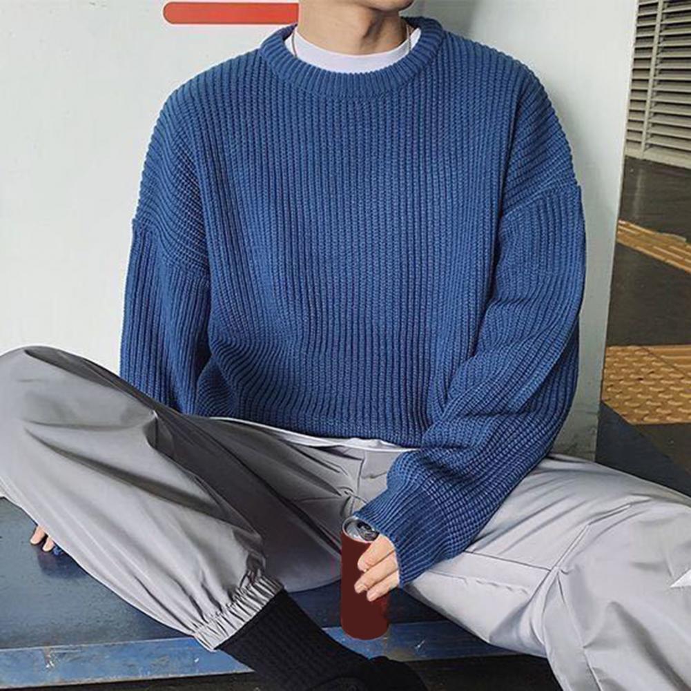 Stile coreano autunno inverno uomo Pullover maglione o-collo manica lunga tinta unita vestibilità ampia maglieria top Streetwear