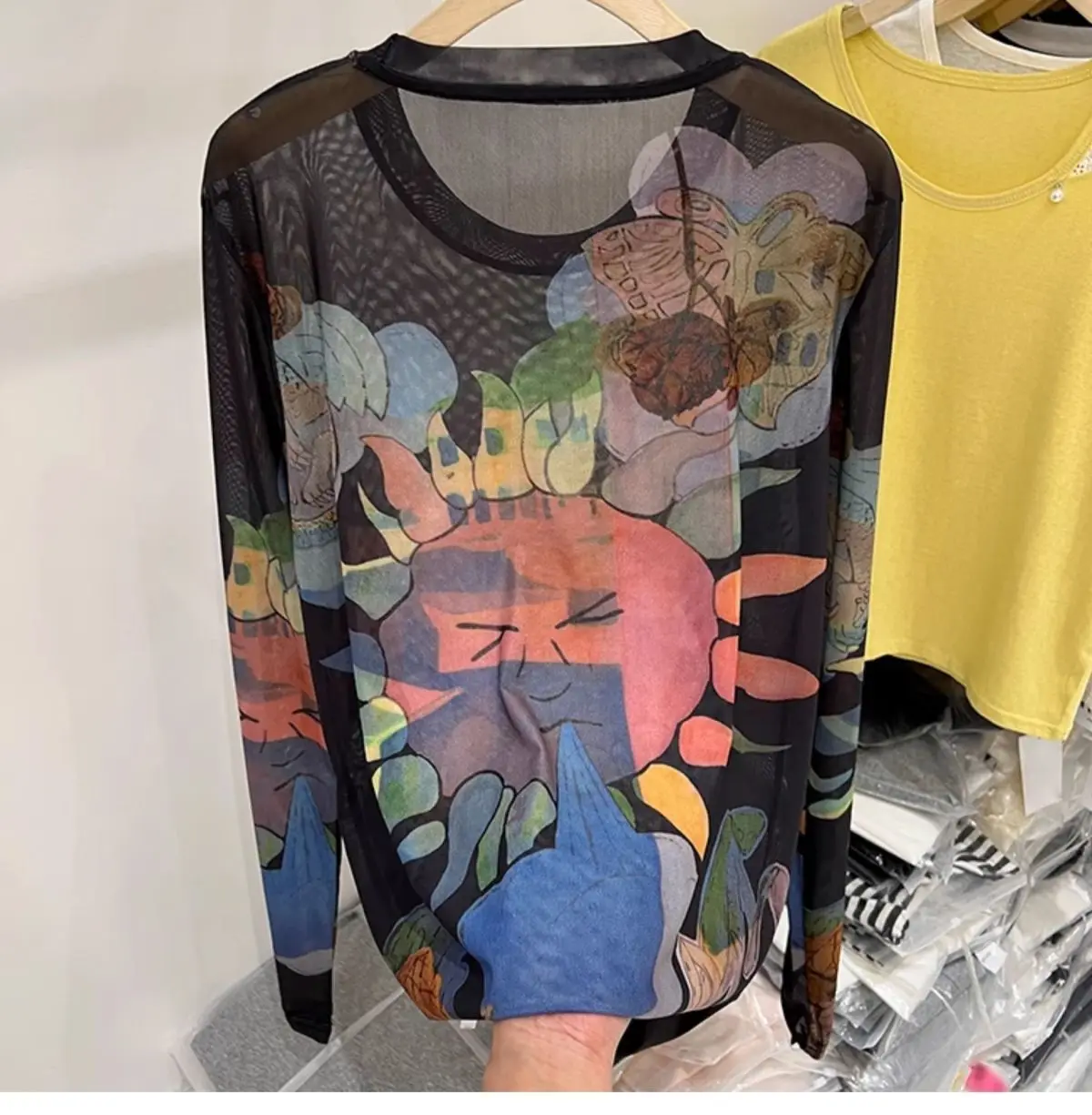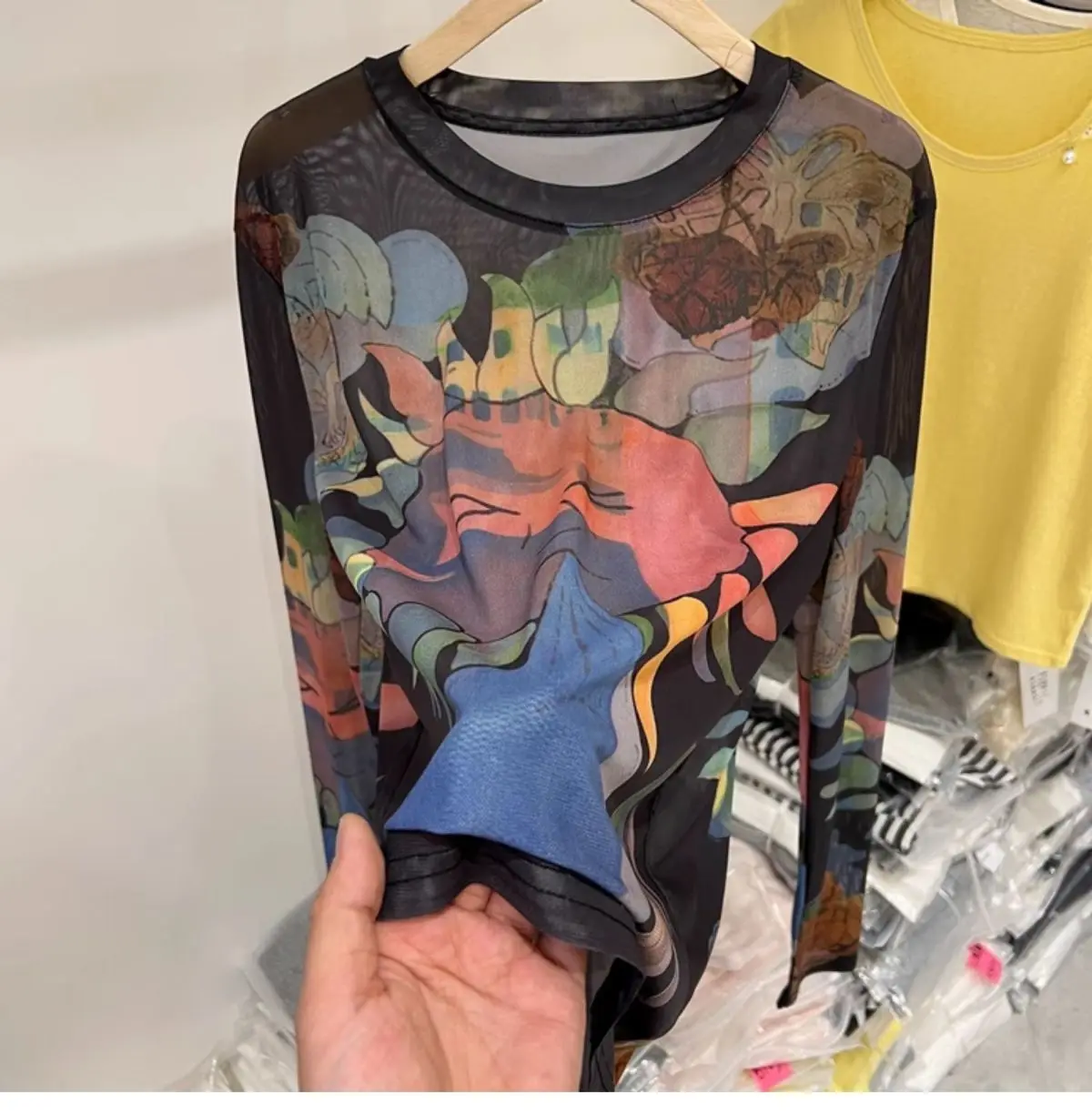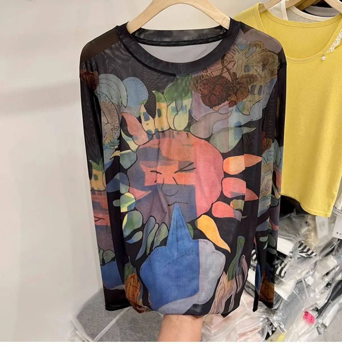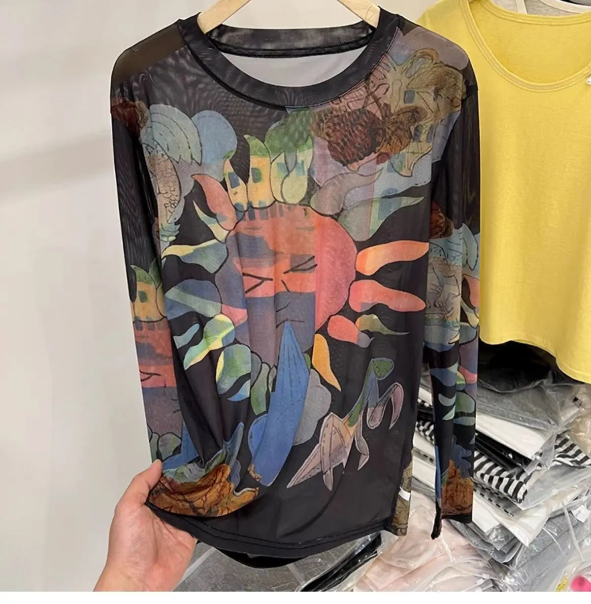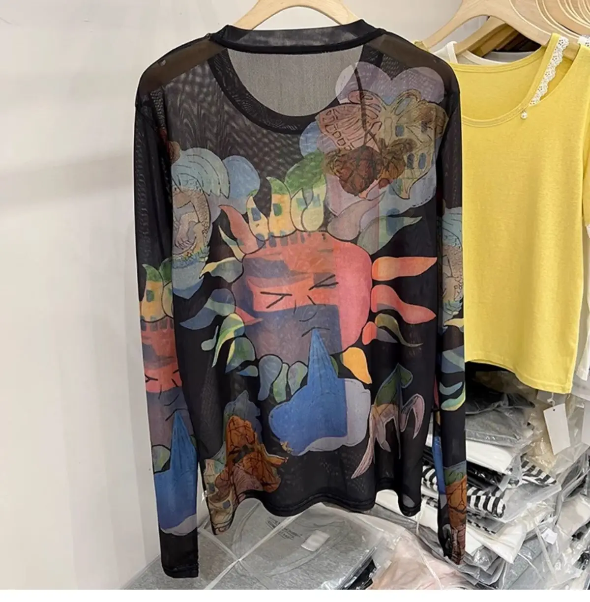 Stile europeo Stampa Tie-Dye Pizzo Moda Protezione solare Estate da donna Nuova camicia con copertura ampia Top leggero