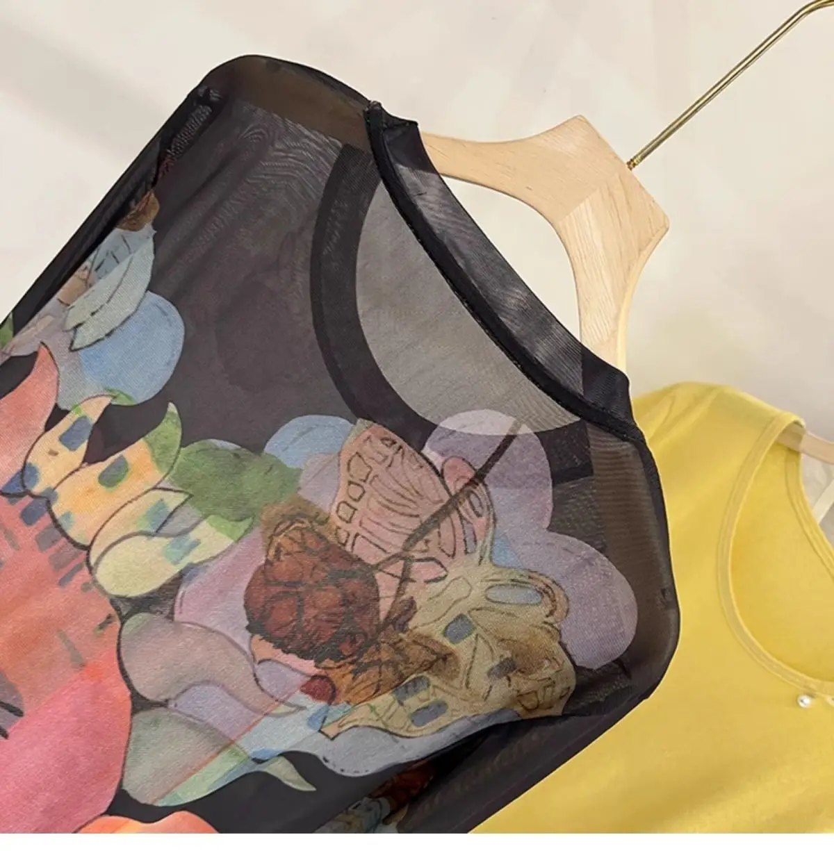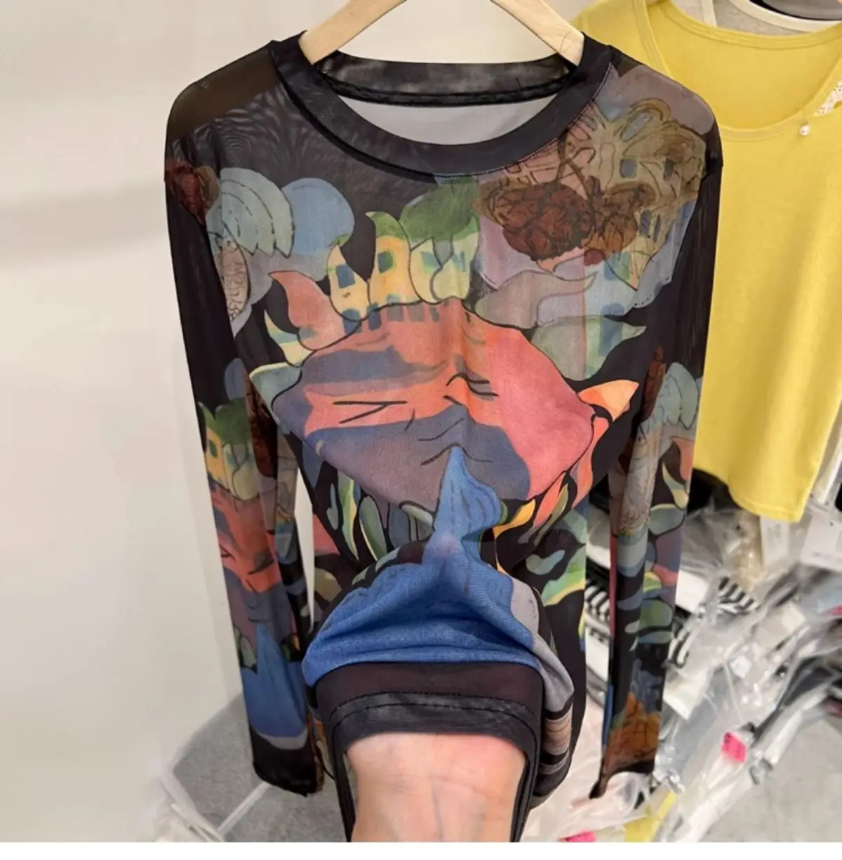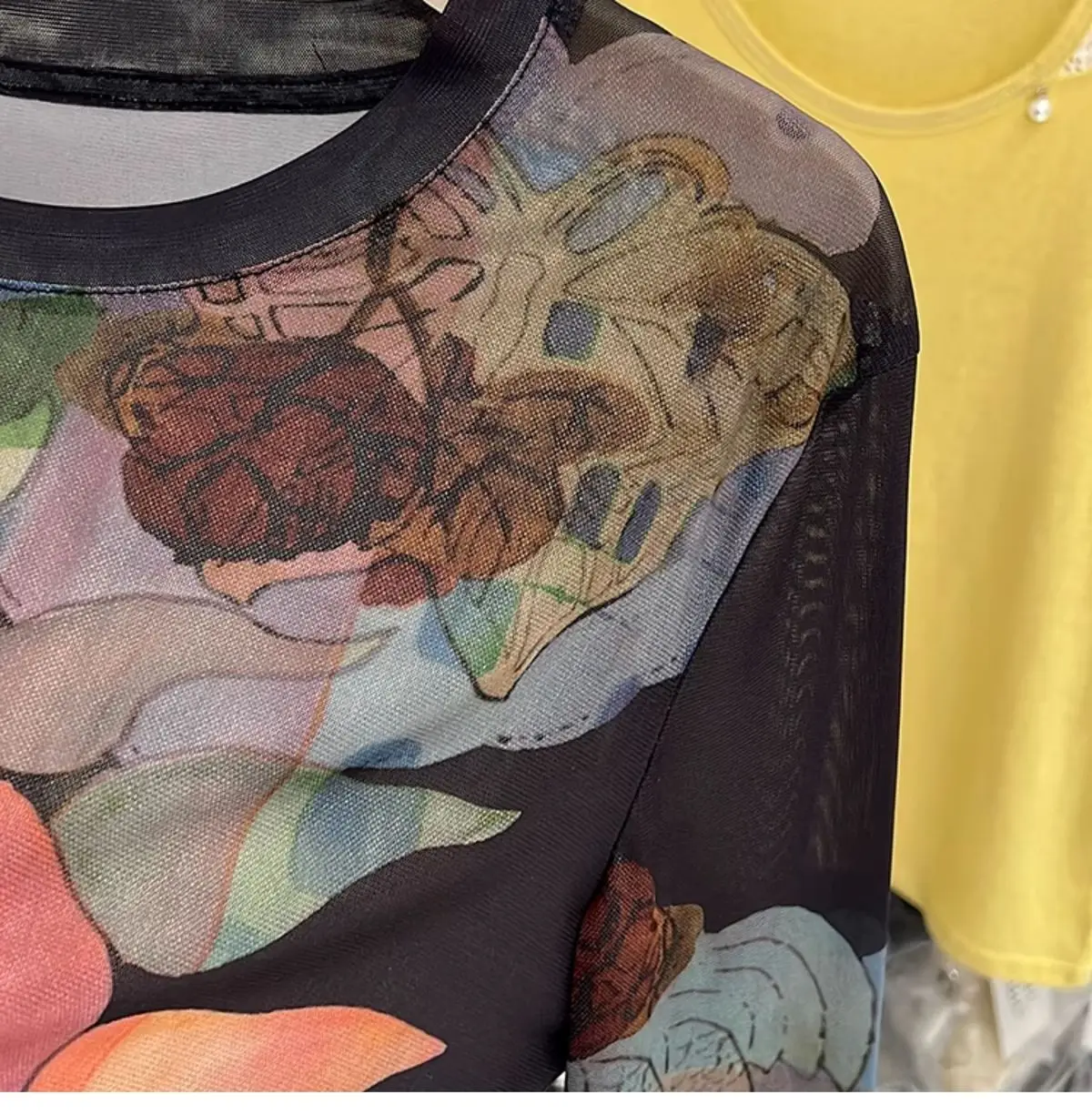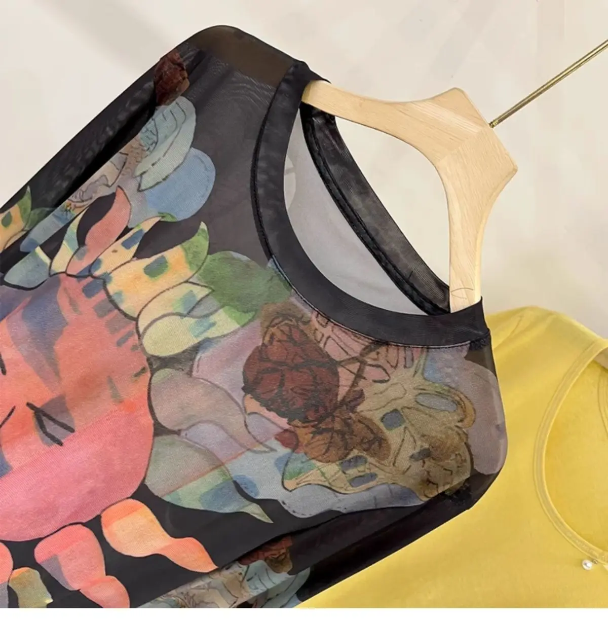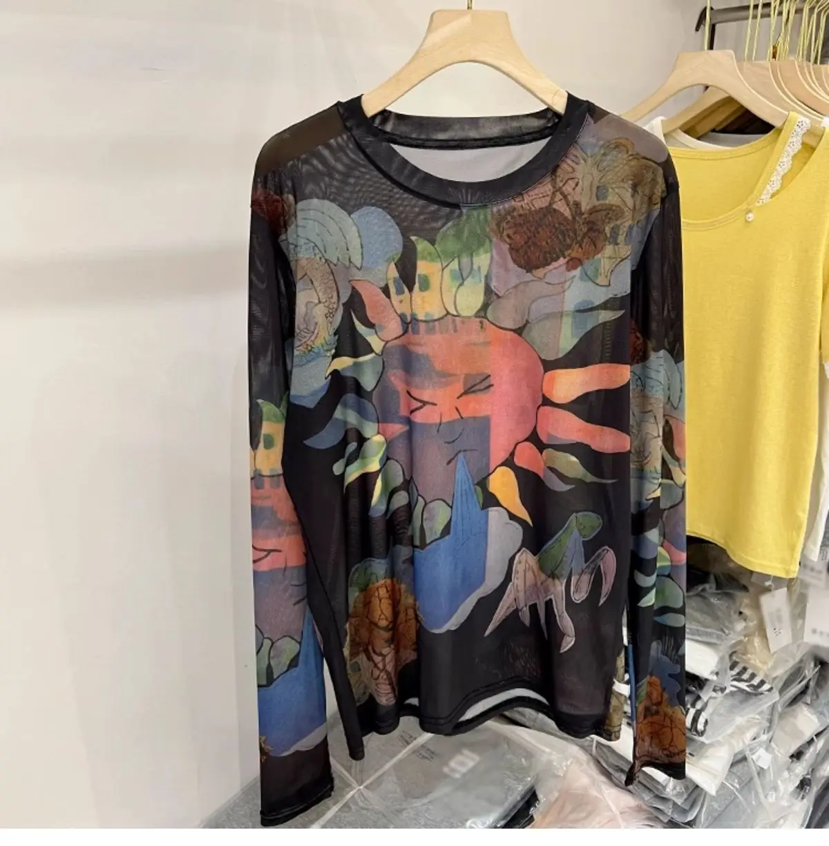 Stile europeo Stampa Tie-Dye Pizzo Moda Protezione solare Estate da donna Nuova camicia con copertura ampia Top leggero