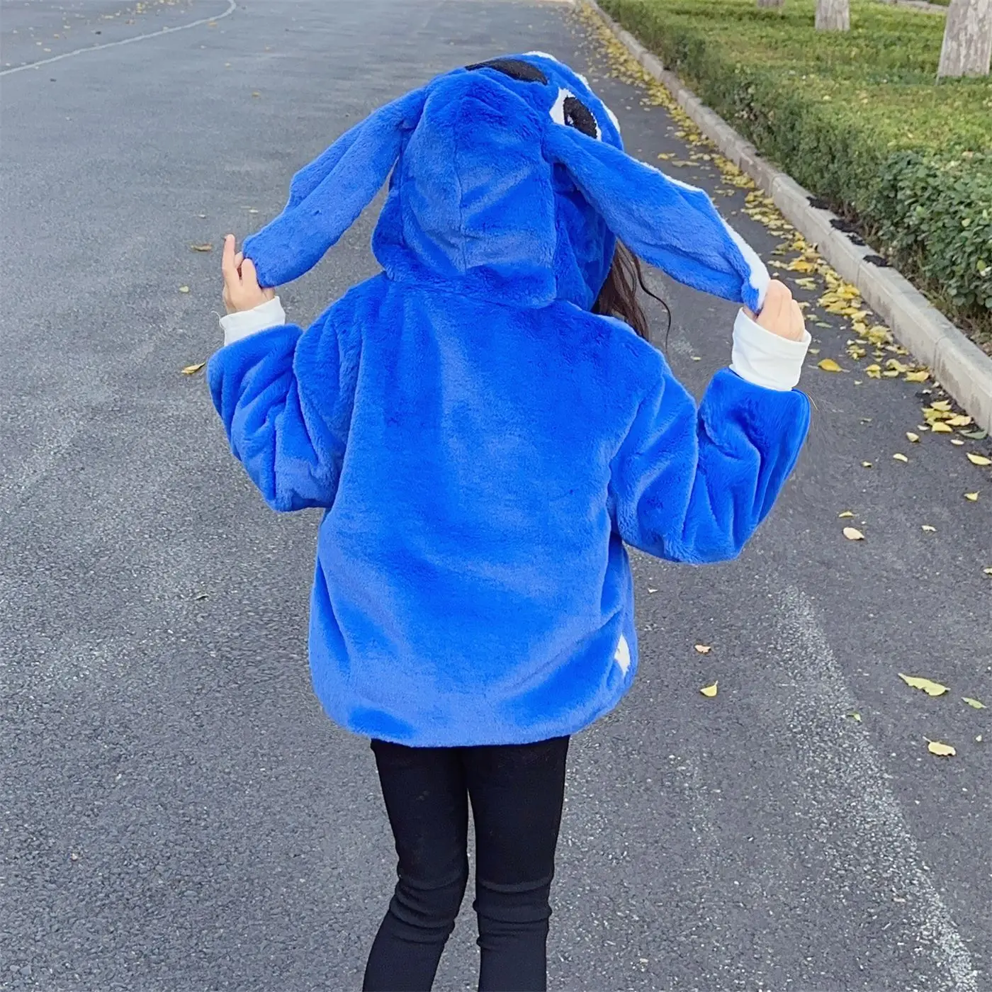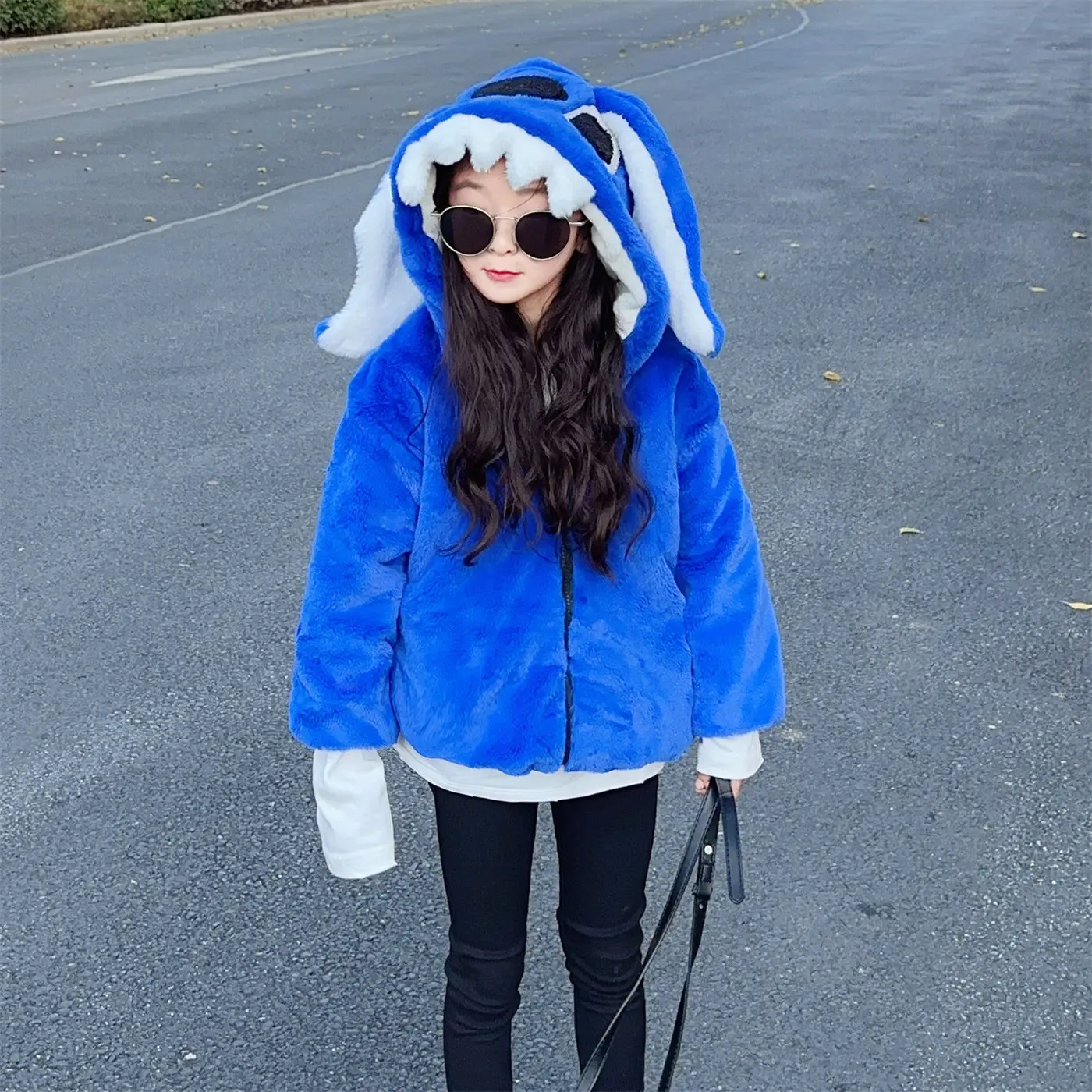 Stitch Bambini Vestiti imbottiti in cotone Inverno Bambini Cartoon Imitazione pelliccia Cappotto caldo con cappuccio Bambino Ragazzi Ragazze Capispalla in peluche carino