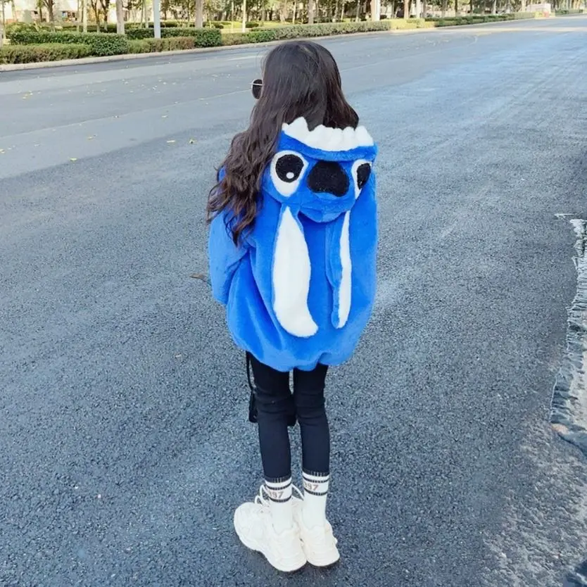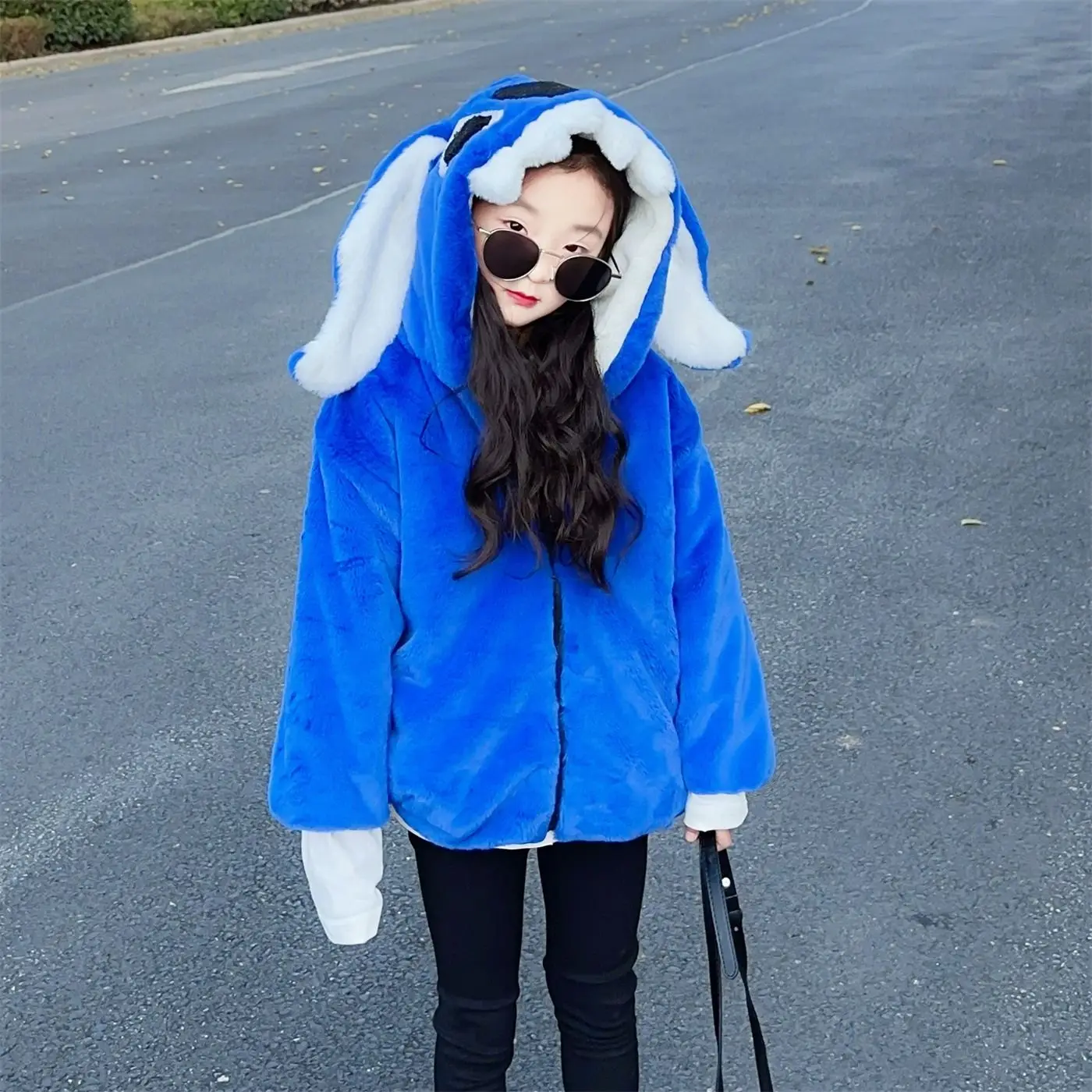 Stitch Bambini Vestiti imbottiti in cotone Inverno Bambini Cartoon Imitazione pelliccia Cappotto caldo con cappuccio Bambino Ragazzi Ragazze Capispalla in peluche carino