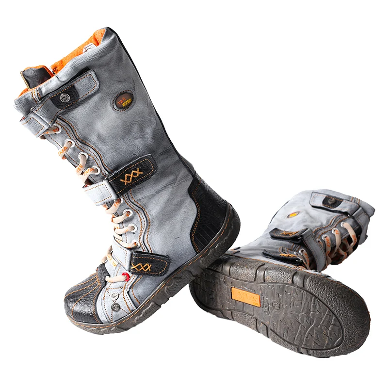 Stivale da donna piatto in pelle PU lavata con cinturino TMA EYES con taglie forti