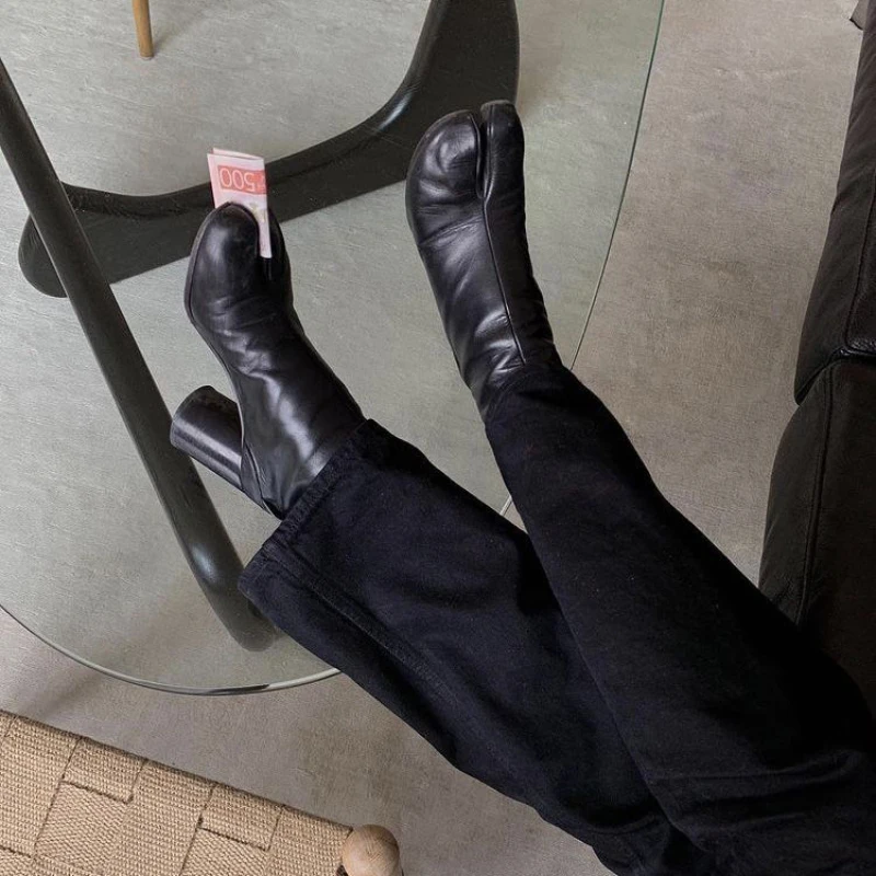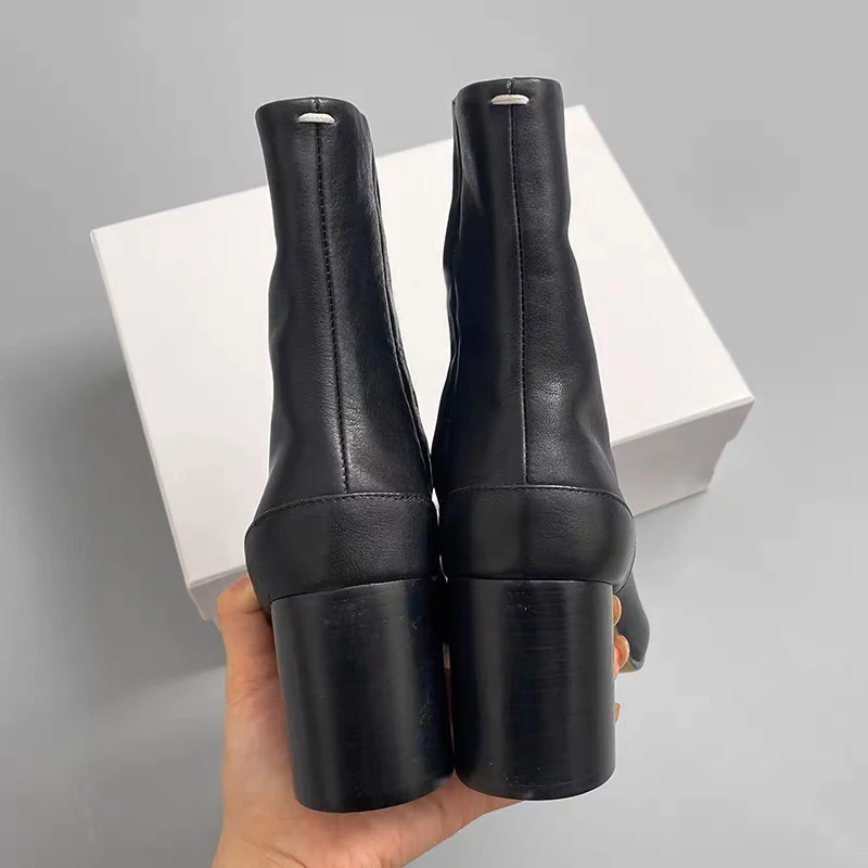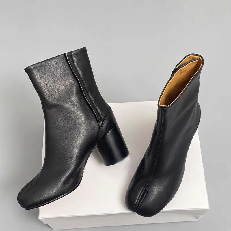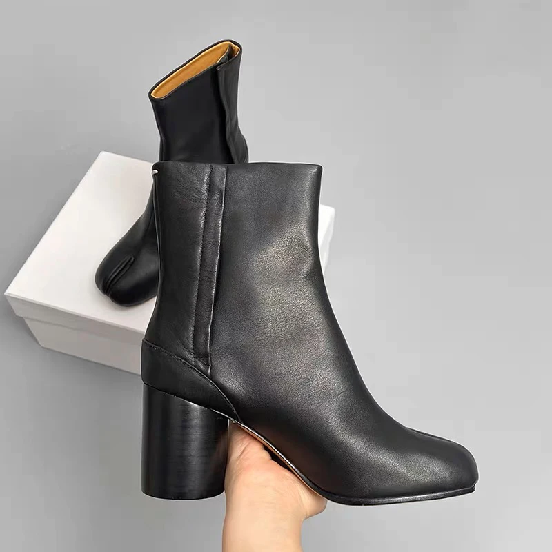 Stivaletti con tacco grosso e punta divisa da donna Stivaletti Tabi firmati di marca Autunno Inverno Scarpe femminili in vera pelle stile INS