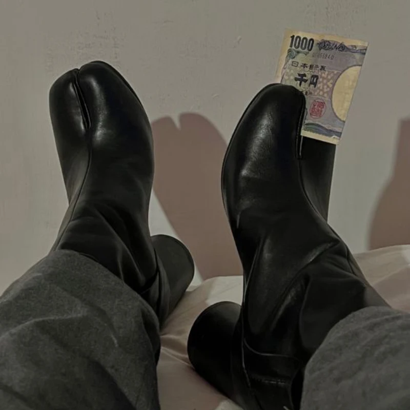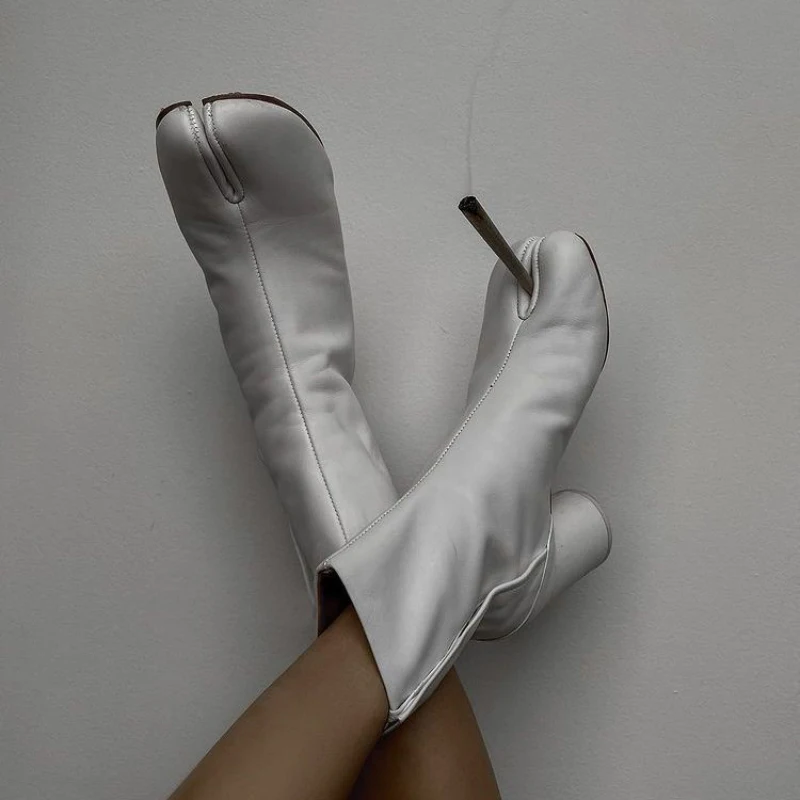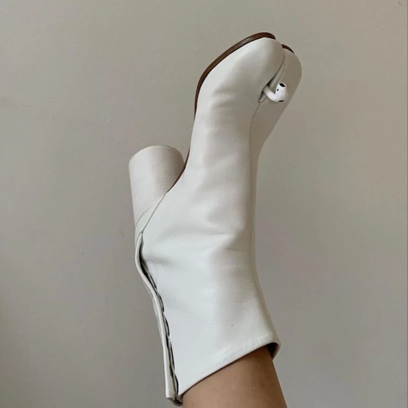 Stivaletti con tacco grosso e punta divisa da donna Stivaletti Tabi firmati di marca Autunno Inverno Scarpe femminili in vera pelle stile INS