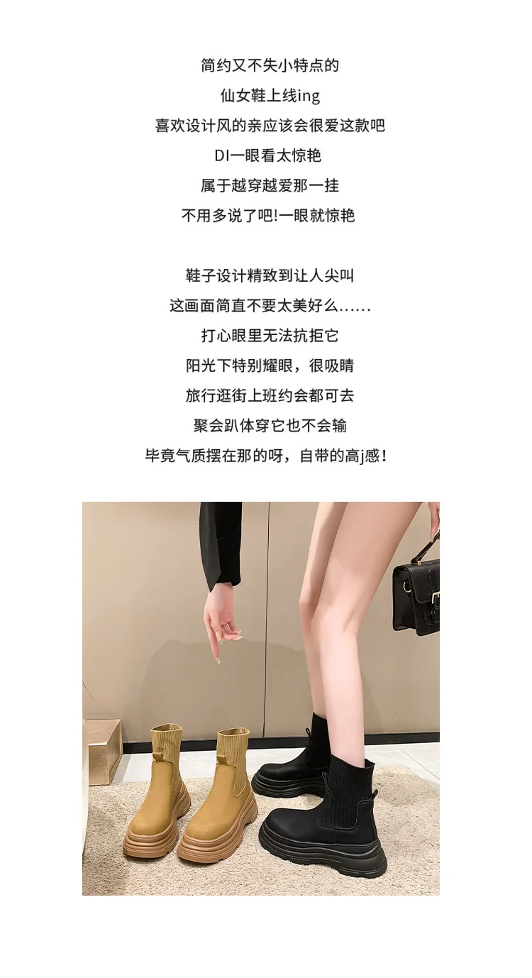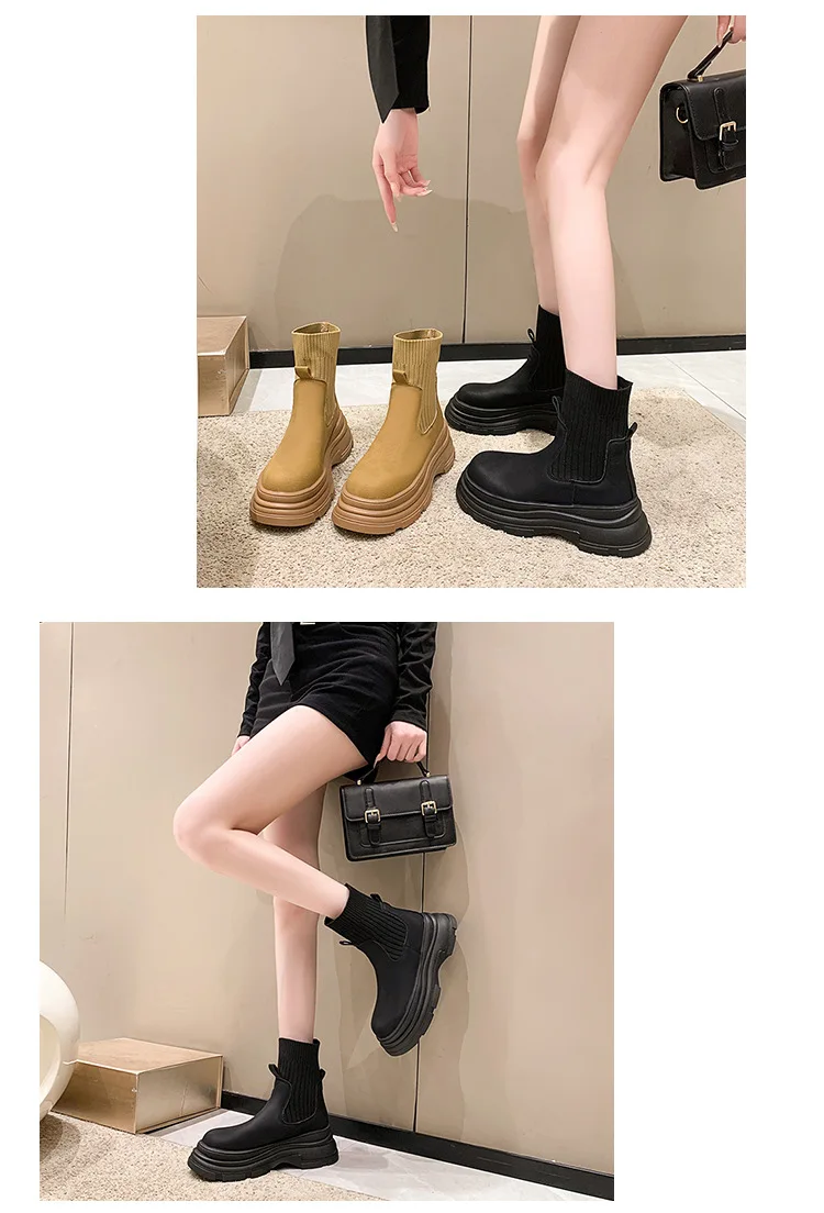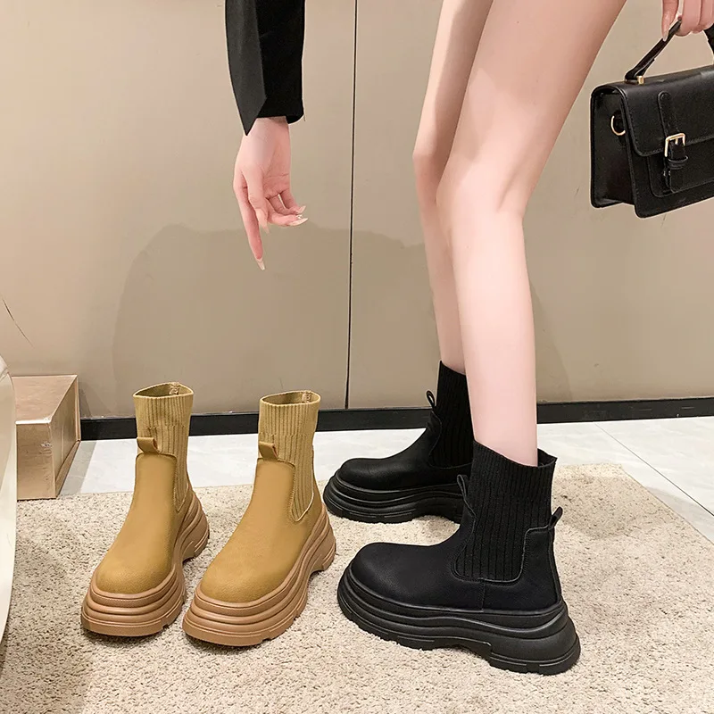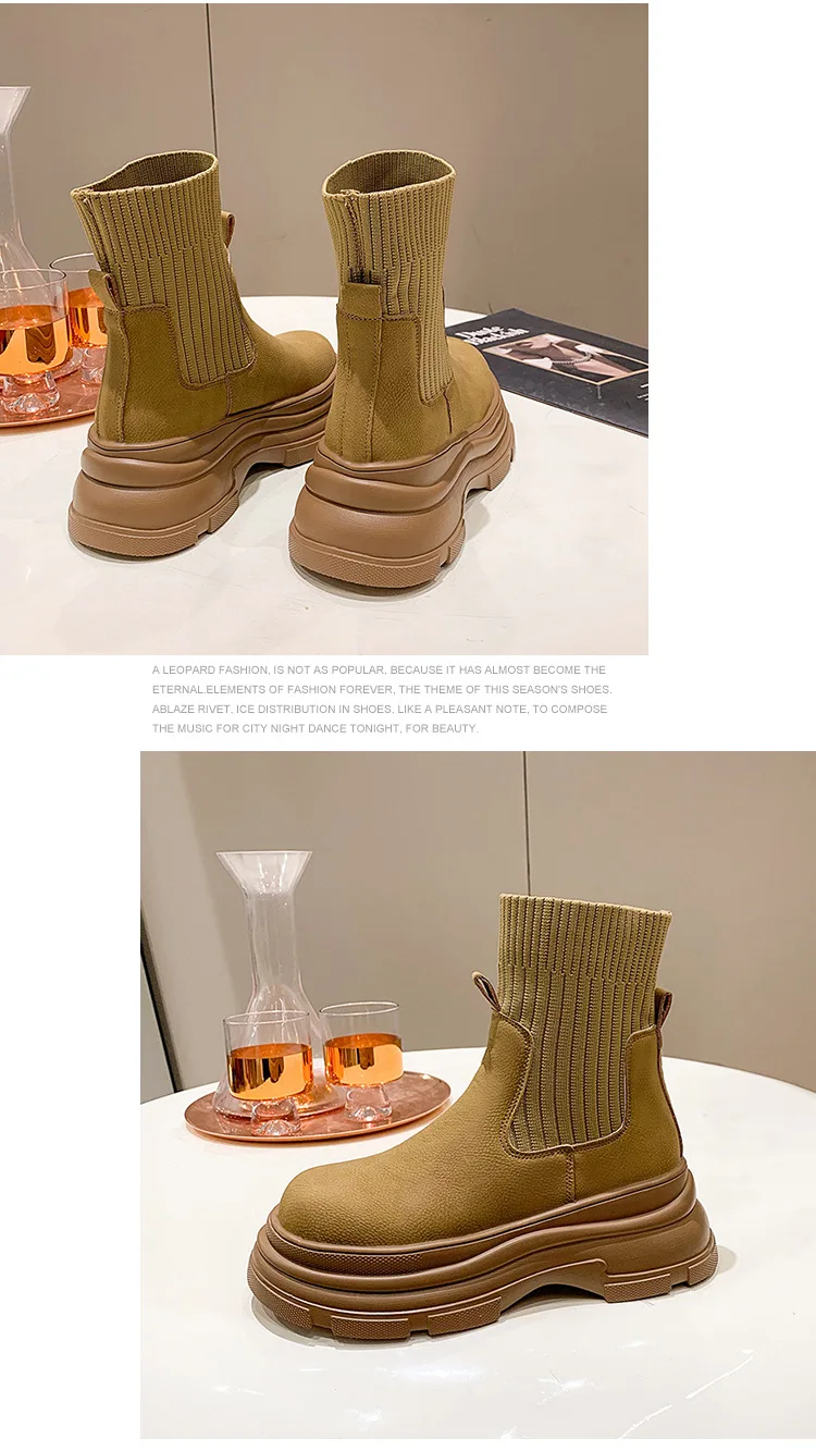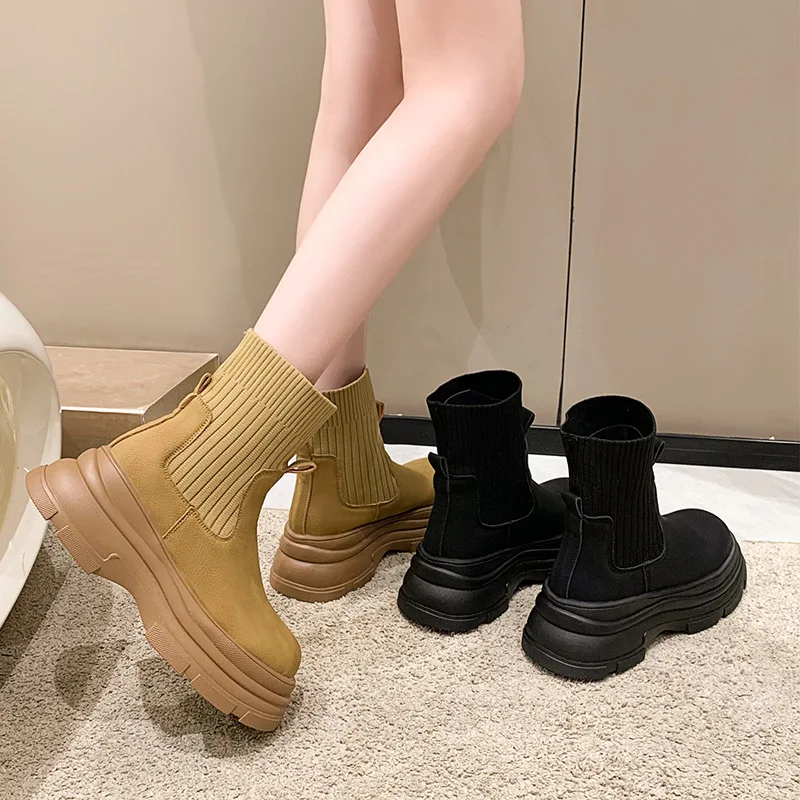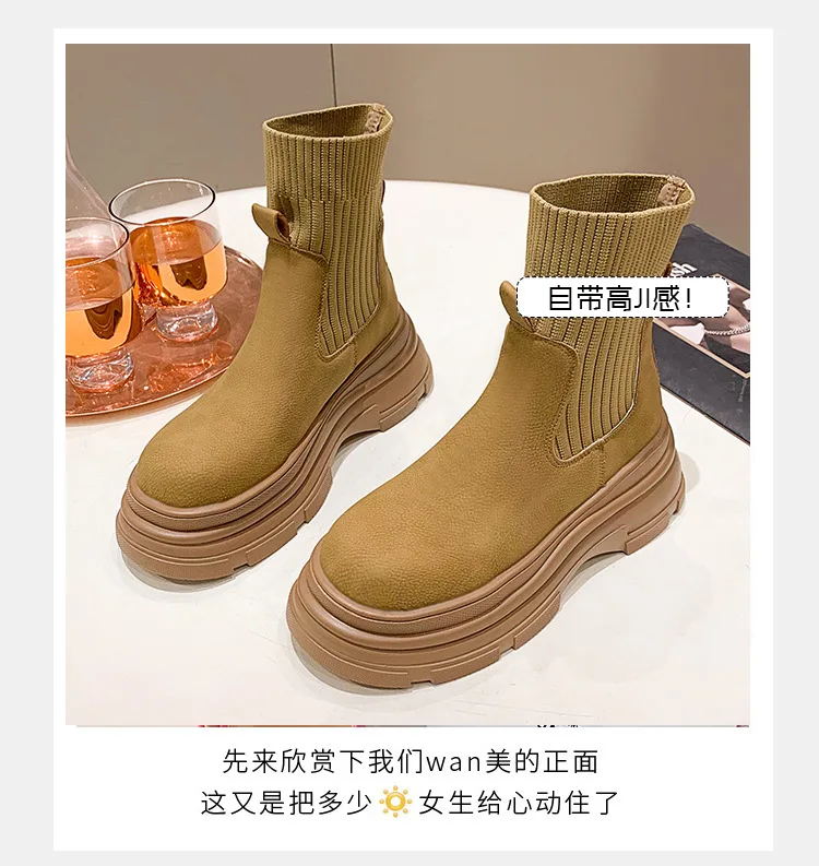 Stivaletti corti da donna di nuovo stile Autunno Inverno Stivaletti elastici dimagranti lavorati a maglia Donna Scarpe casual con plateau con altezza crescente