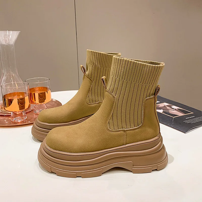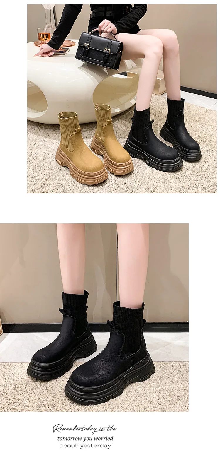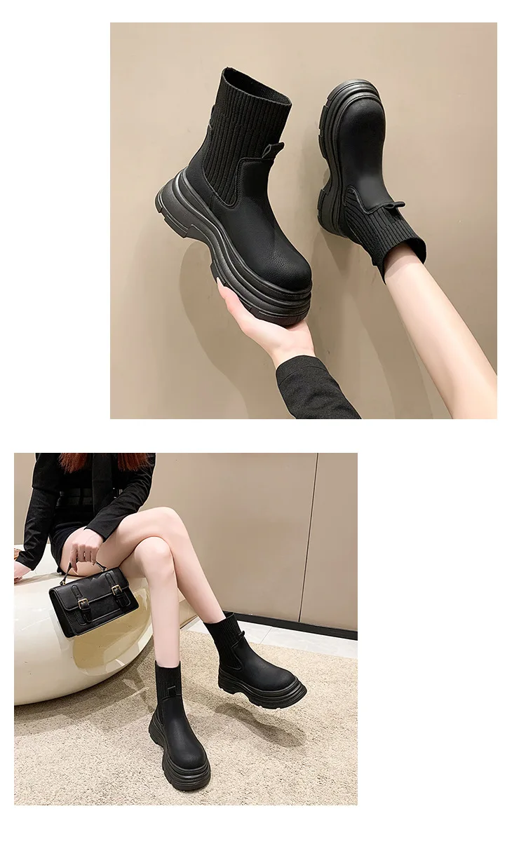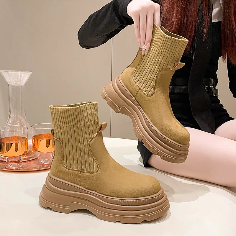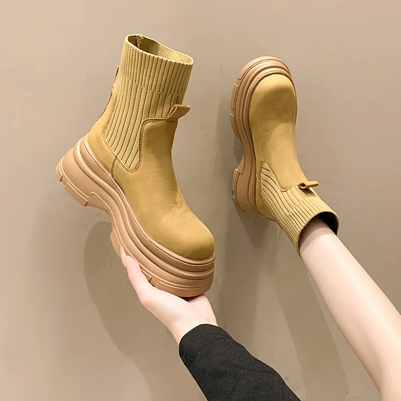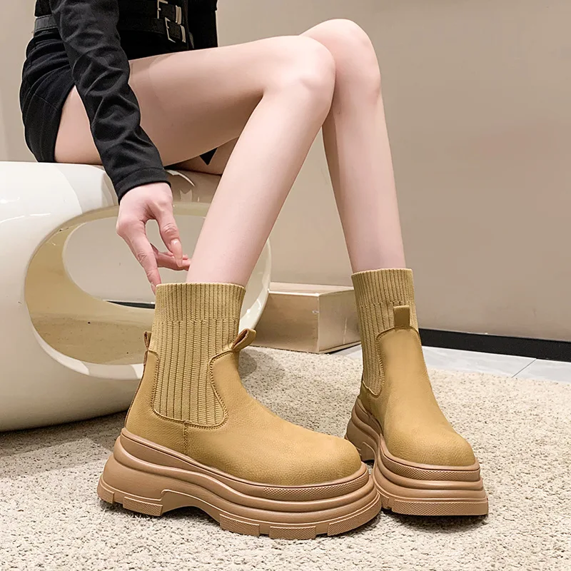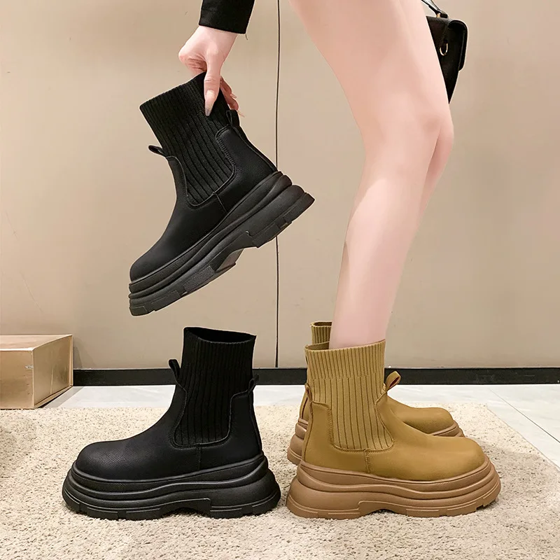 Stivaletti corti da donna di nuovo stile Autunno Inverno Stivaletti elastici dimagranti lavorati a maglia Donna Scarpe casual con plateau con altezza crescente