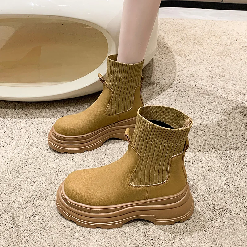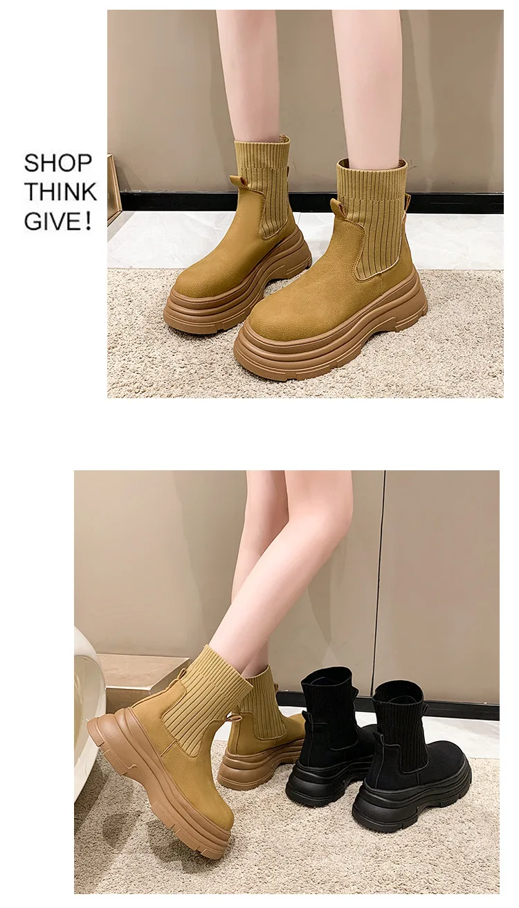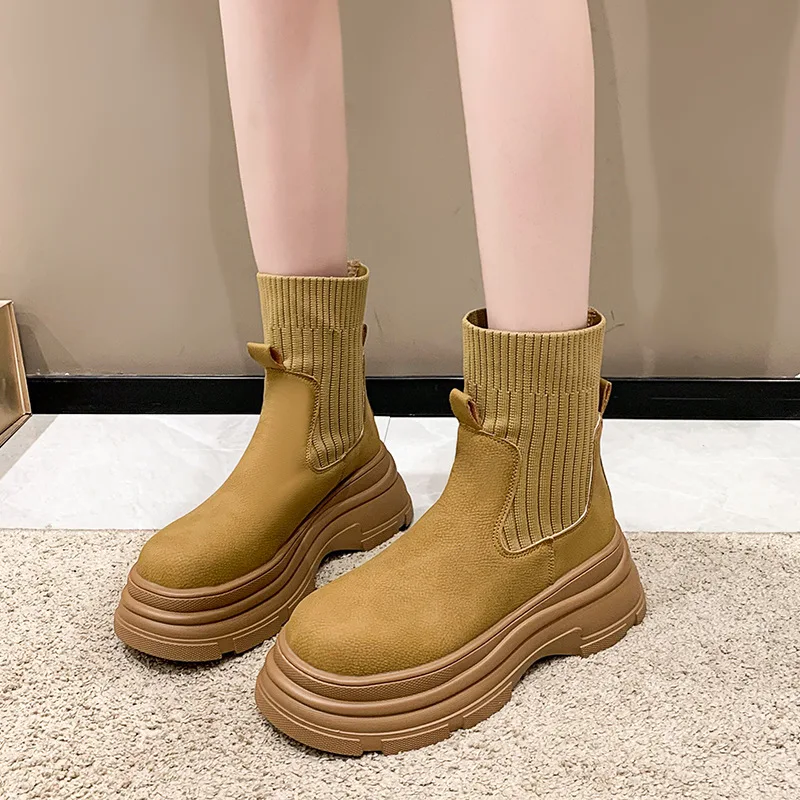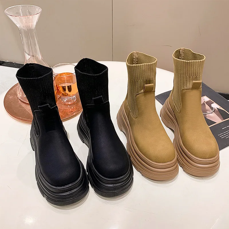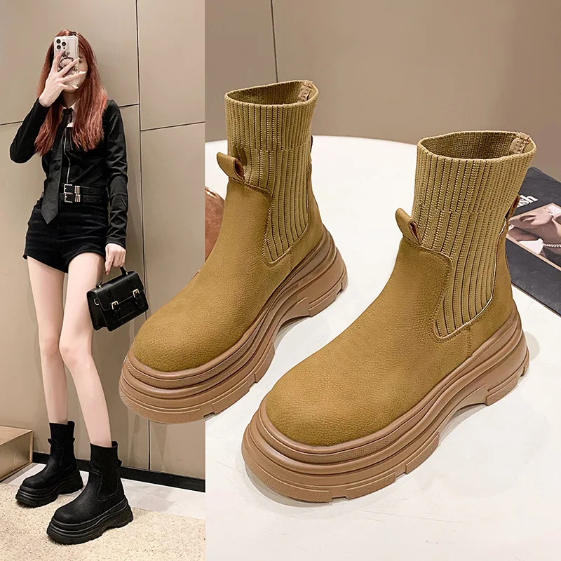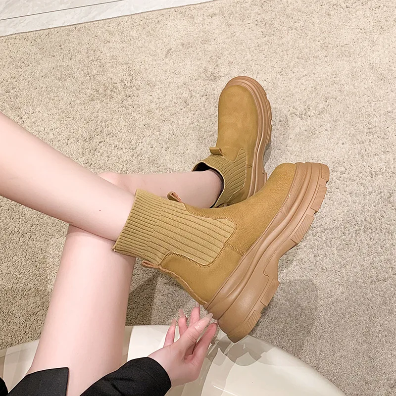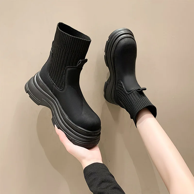 Stivaletti corti da donna di nuovo stile Autunno Inverno Stivaletti elastici dimagranti lavorati a maglia Donna Scarpe casual con plateau con altezza crescente