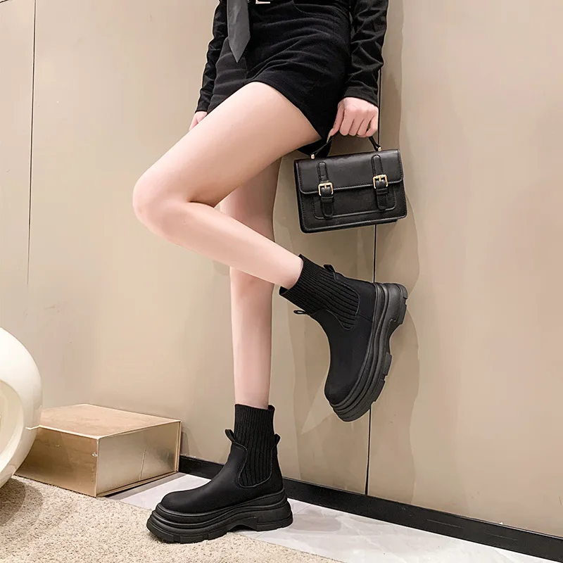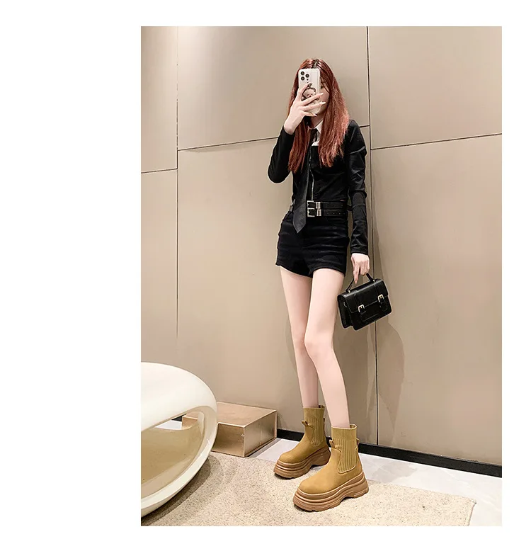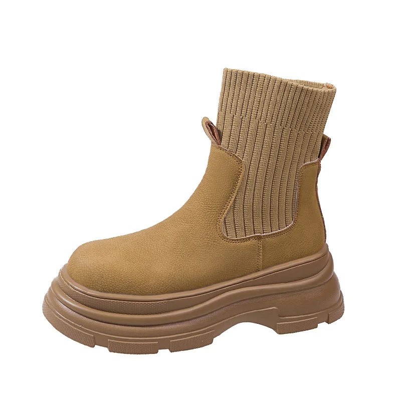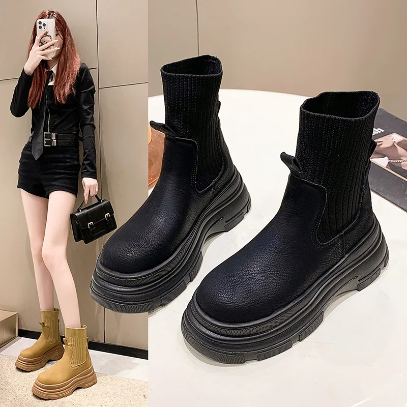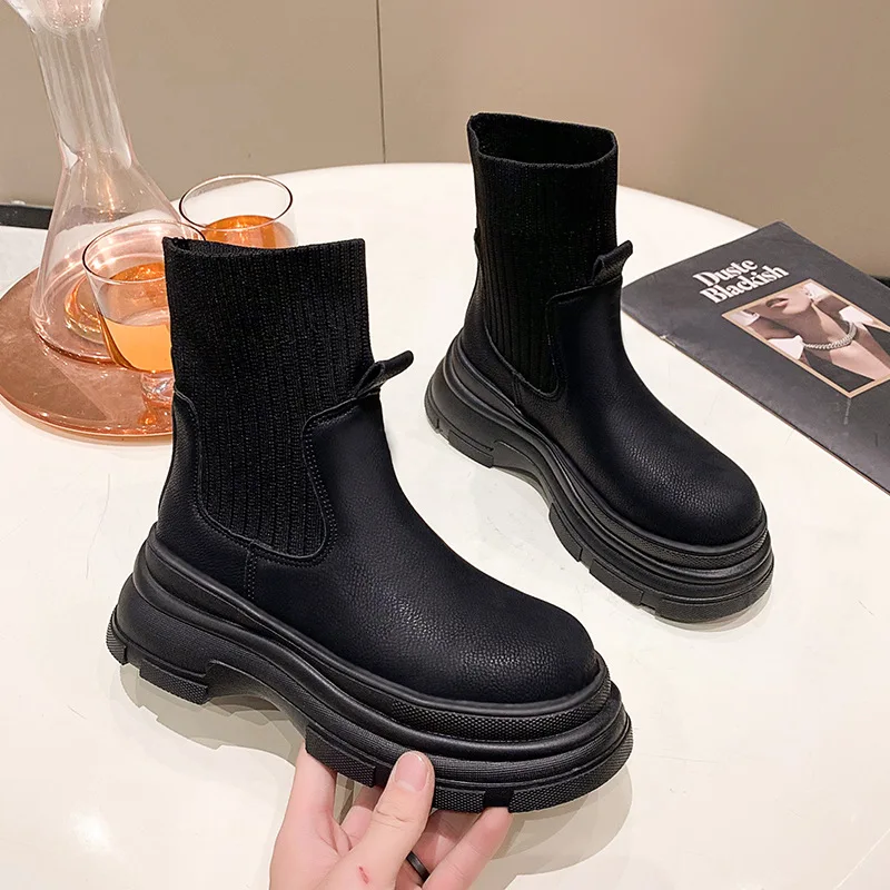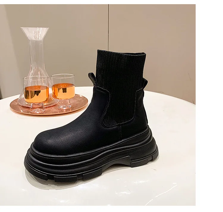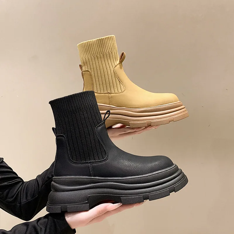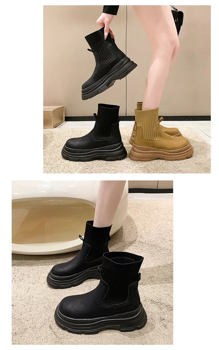 Stivaletti corti da donna di nuovo stile Autunno Inverno Stivaletti elastici dimagranti lavorati a maglia Donna Scarpe casual con plateau con altezza crescente