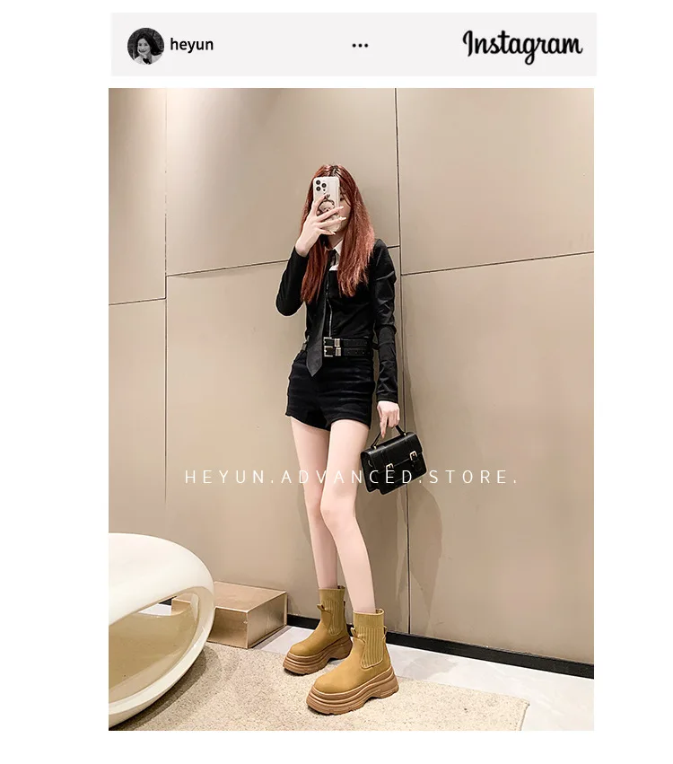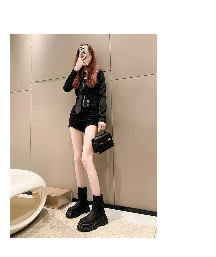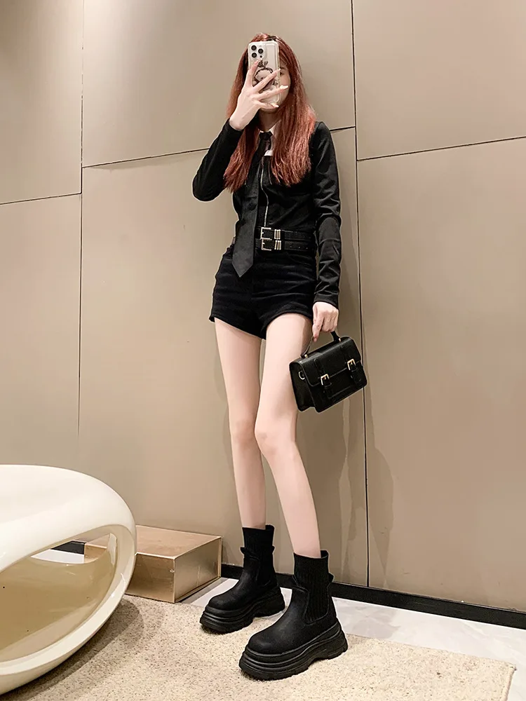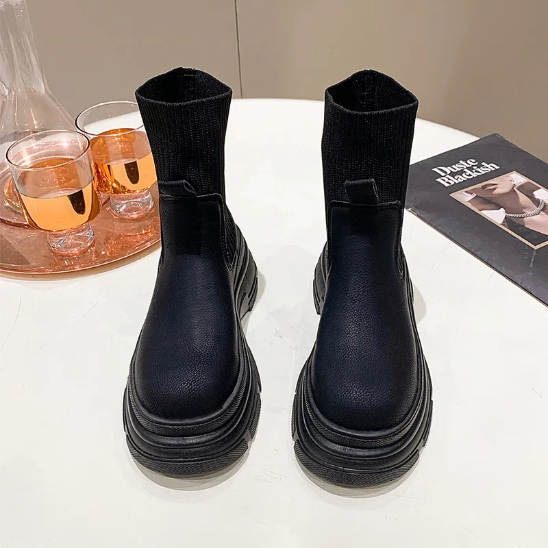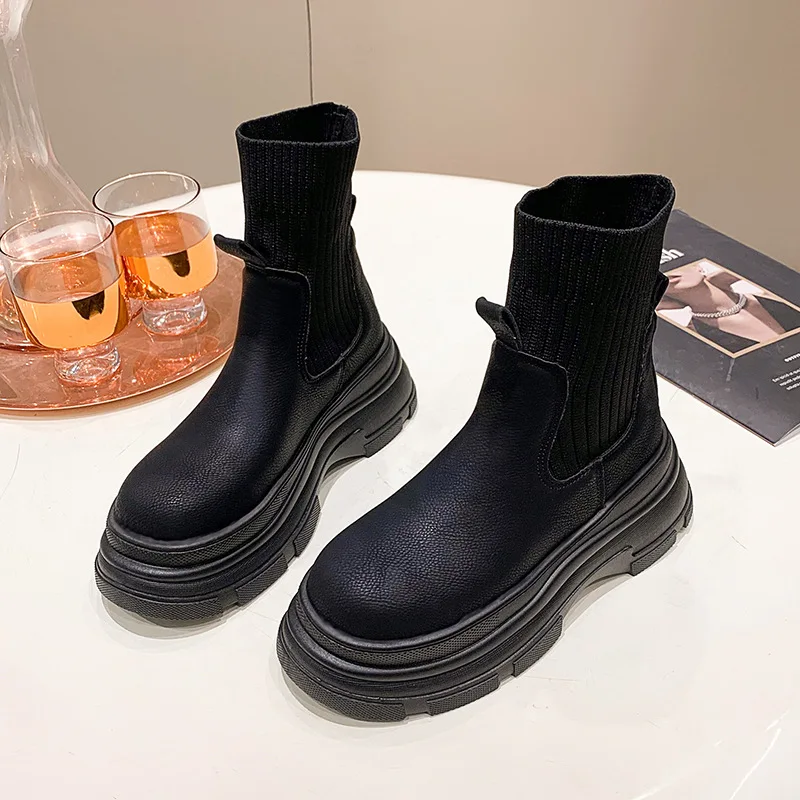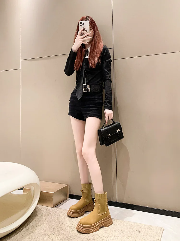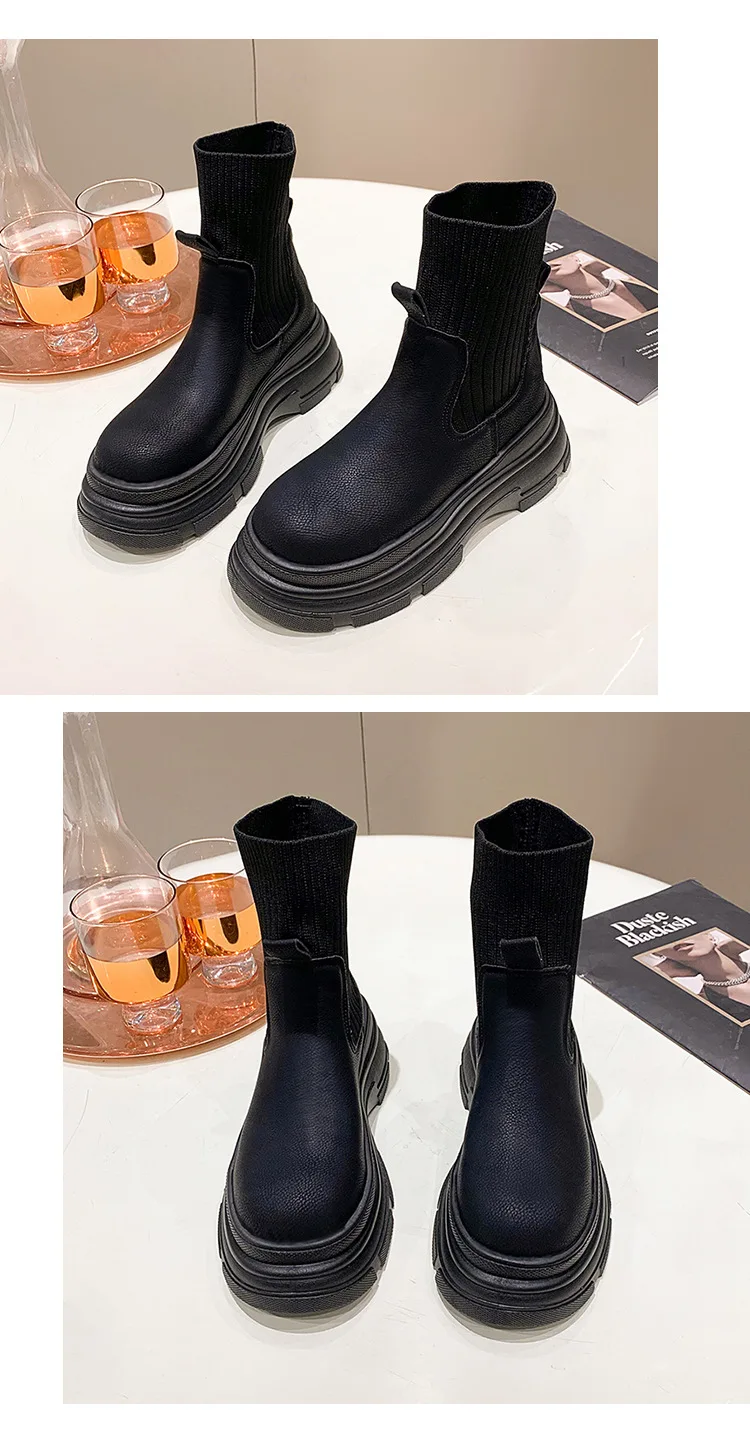 Stivaletti corti da donna di nuovo stile Autunno Inverno Stivaletti elastici dimagranti lavorati a maglia Donna Scarpe casual con plateau con altezza crescente