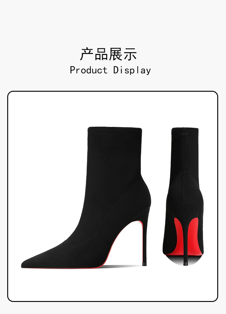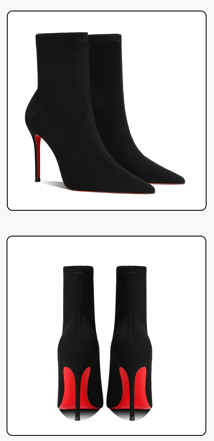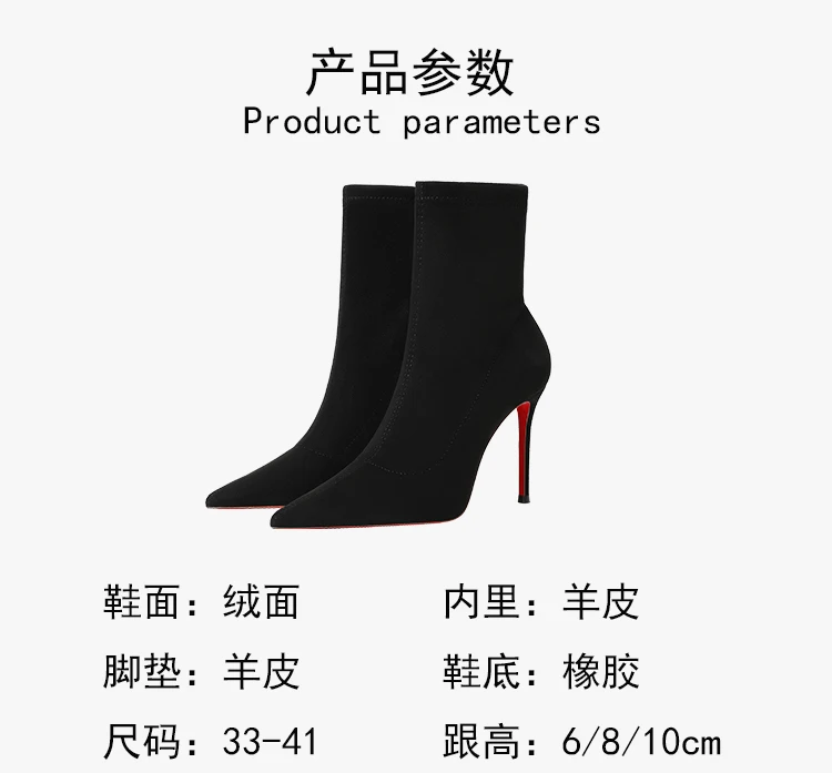 Stivaletti da donna invernali Fondo rosso lucido Calzini lavorati a maglia Stivali Autunno 2025 Stivali elasticizzati di nuova moda Donna sexy Tacchi alti Fem