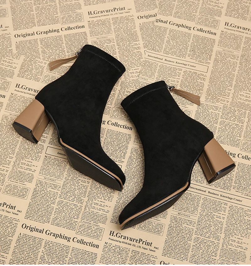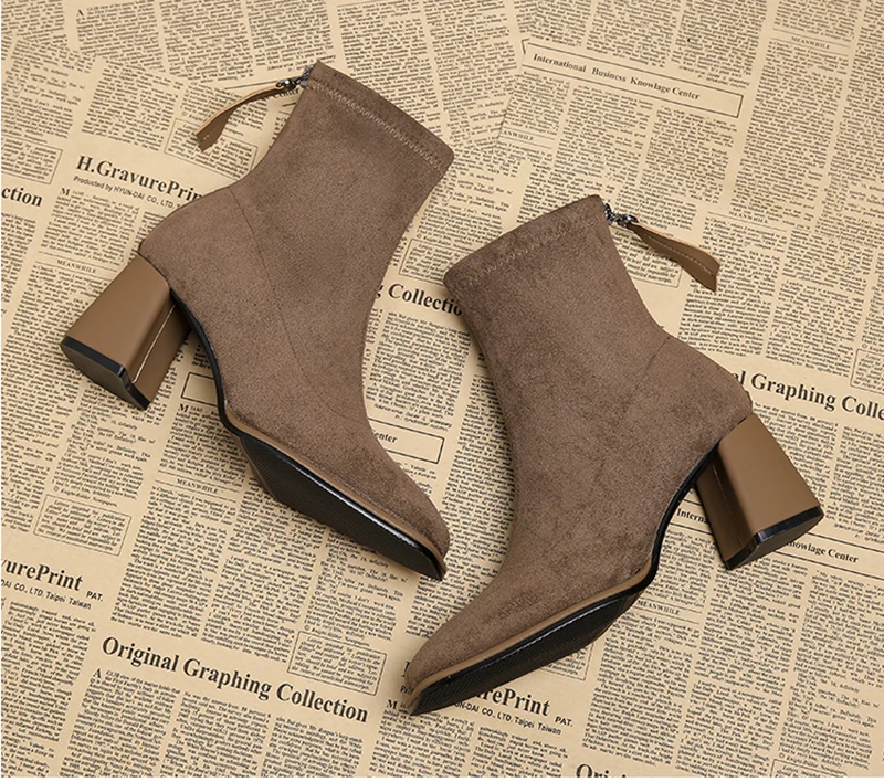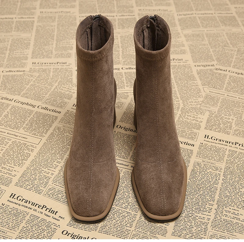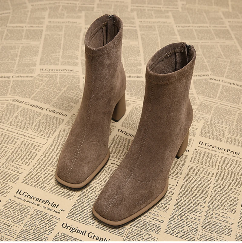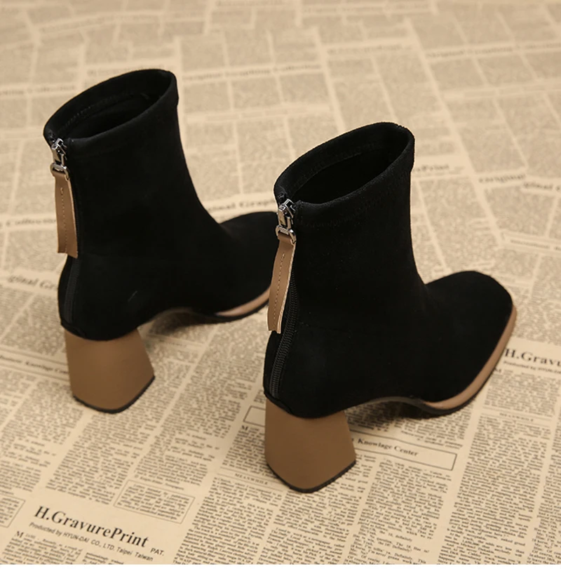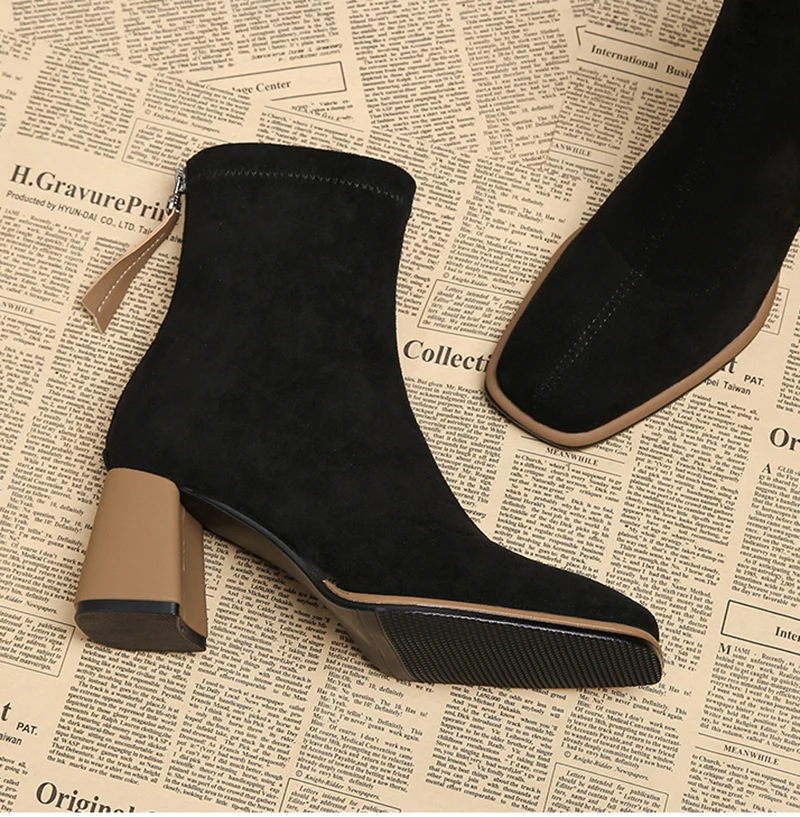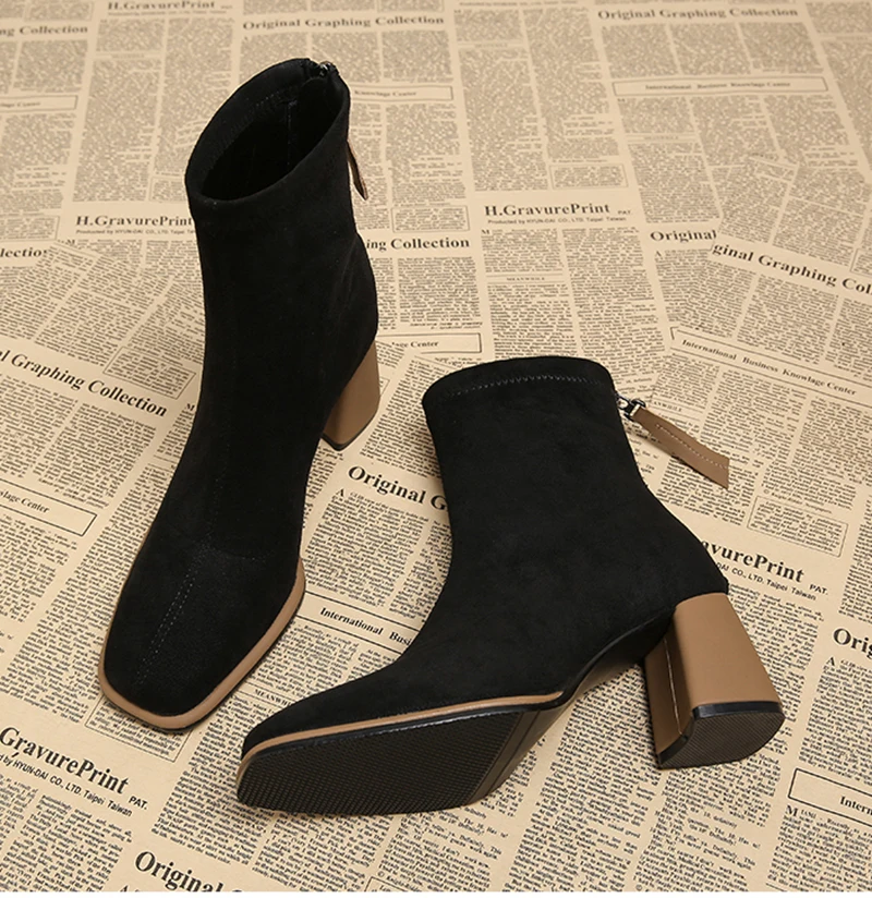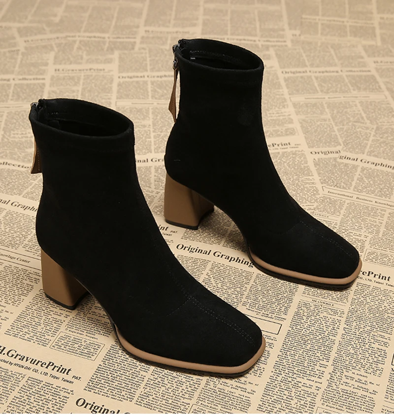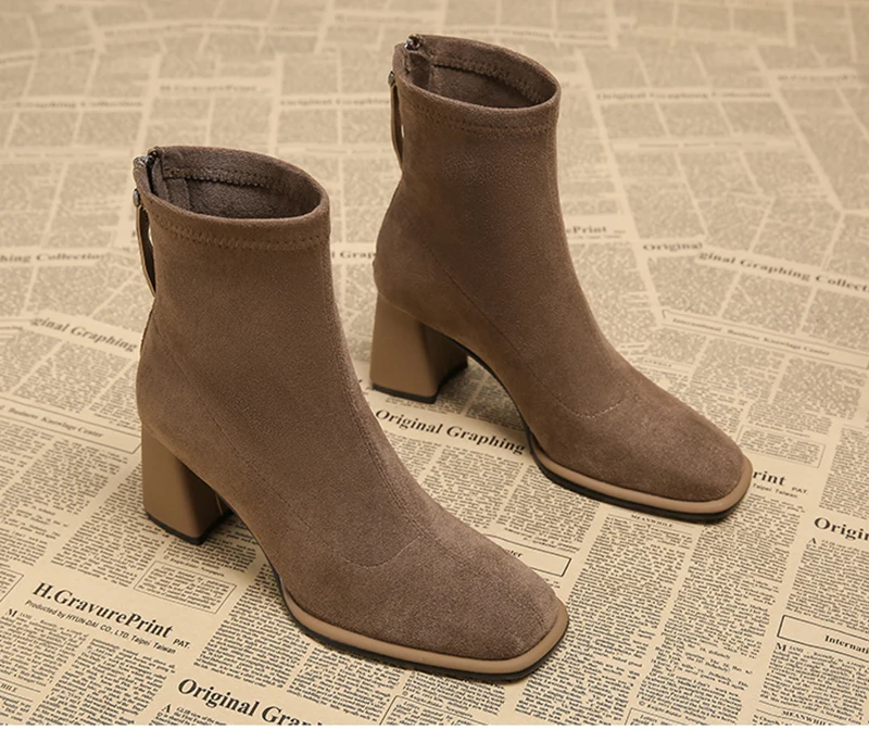 Stivaletti da donna vintage con punta quadrata Cerniere alla moda Scarpe con tacco spesso Stivaletti corti moderni eleganti invernali 1Stivaletti da donna vintage con punta quadrata Cerniere alla moda Scarpe con tacco spesso Stivaletti corti moderni eleganti invernali