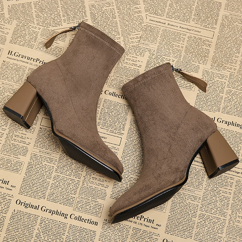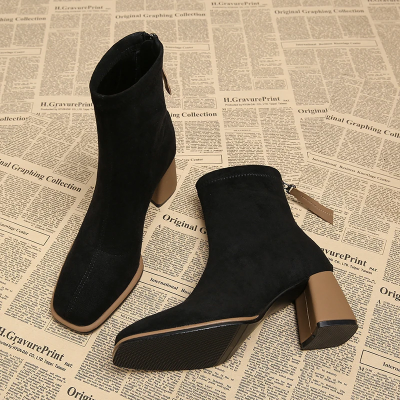 Stivaletti da donna vintage con punta quadrata Cerniere alla moda Scarpe con tacco spesso Stivaletti corti moderni eleganti invernali 1Stivaletti da donna vintage con punta quadrata Cerniere alla moda Scarpe con tacco spesso Stivaletti corti moderni eleganti invernali