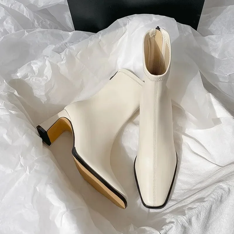 Stivaletti da donna vintage in cotone caldo moda eleganti scarpe con punta quadrata autunno inverno stivaletti corti da donna con tacco spesso