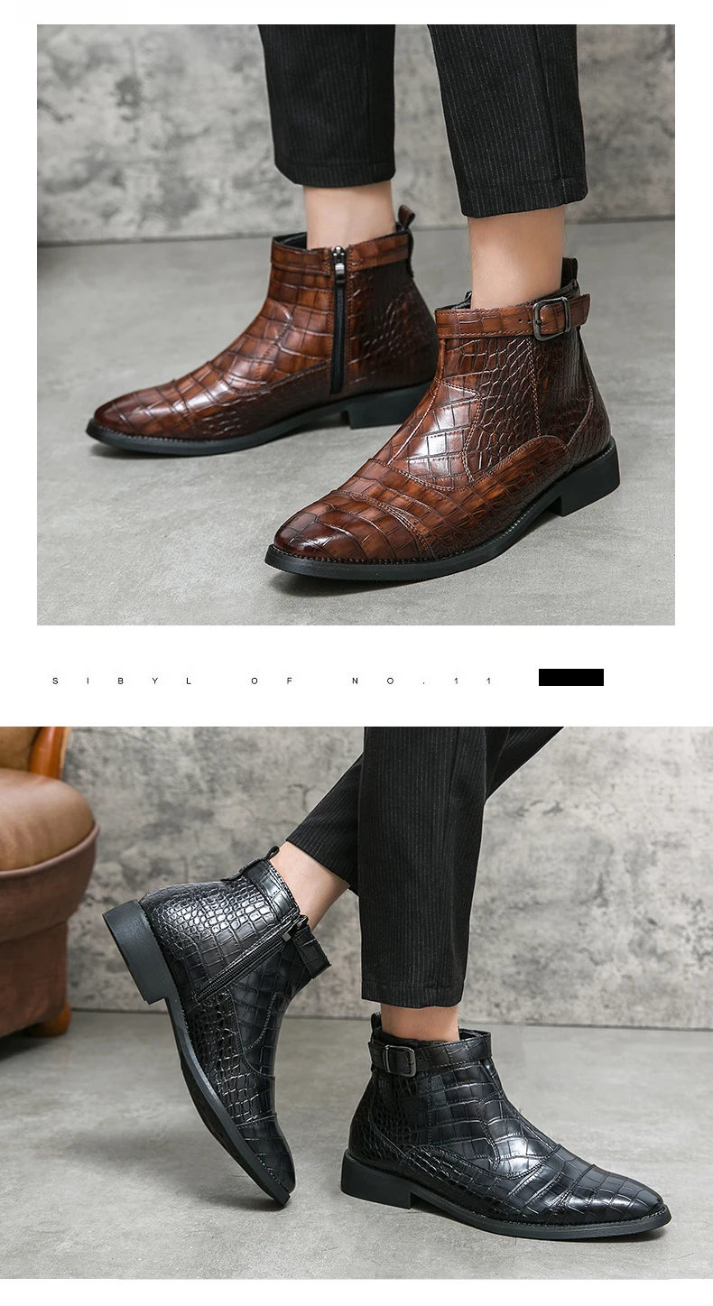 Realizzati con pelle di prima qualità e stampa coccodrillo, questi stivali trasudano lusso e raffinatezza.