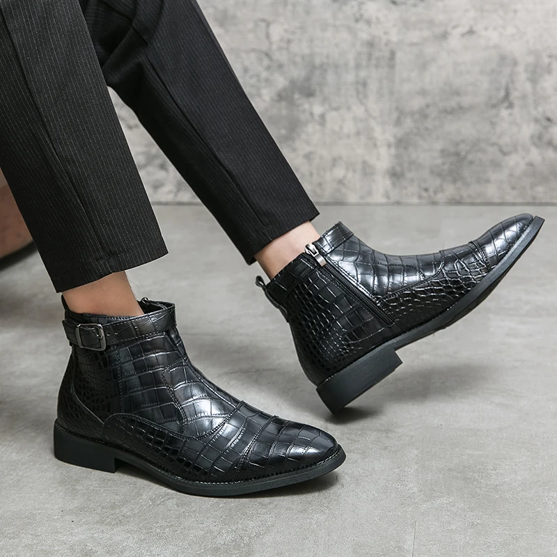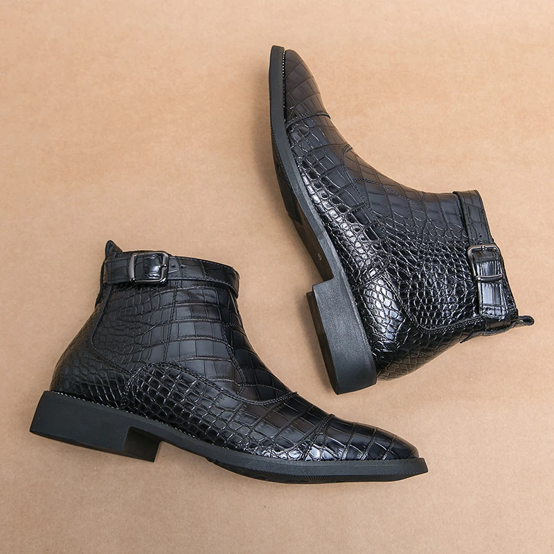 Realizzati con pelle di prima qualità e stampa coccodrillo, questi stivali trasudano lusso e raffinatezza.