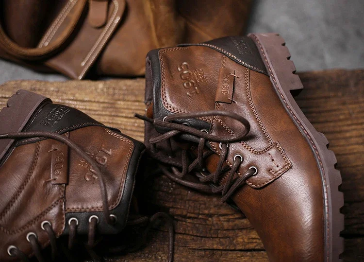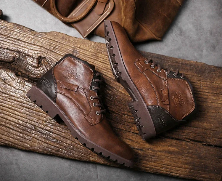 Stivaletti da uomo in pelle High Top Calzature da lavoro all’aperto Moto Clevintage Stivale da cowboy Scarpe casual da uomo di moda Zapatillas Uomo