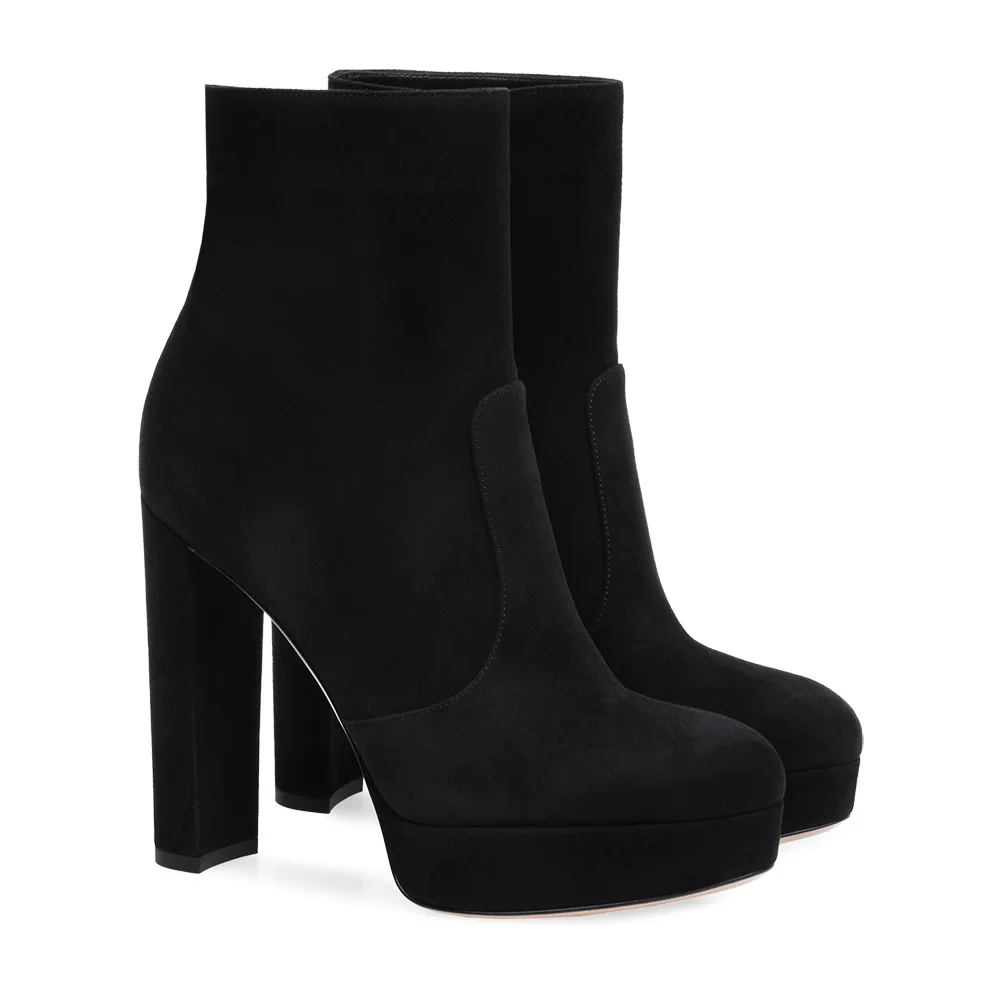 Stivaletti in pelle scamosciata da donna Tacco alto grosso con piattaforma Cerniera laterale Elegante scarpa autunno/inverno Alla moda e confortevole