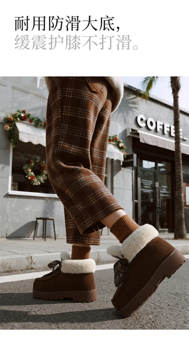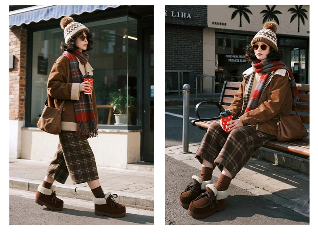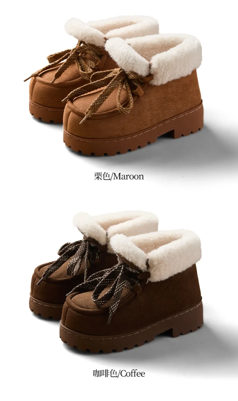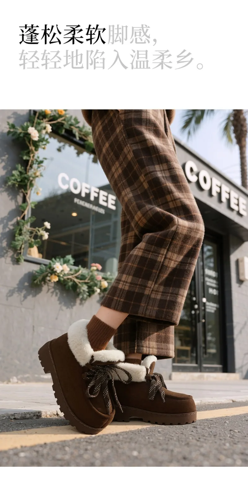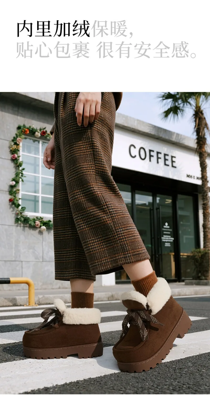 Stivaletti invernali caldi e soffici con lacci per donna Stivali con plateau in pelle scamosciata sintetica marrone retrò Comfort Stivali da neve con tacco grosso antiscivolo